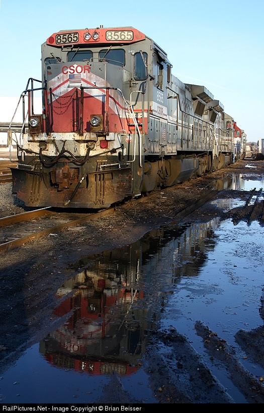 CSOR 8565 reflected in the melted snow as it waits for its next assignment in the yard. Taken with Canon Digital Rebel.