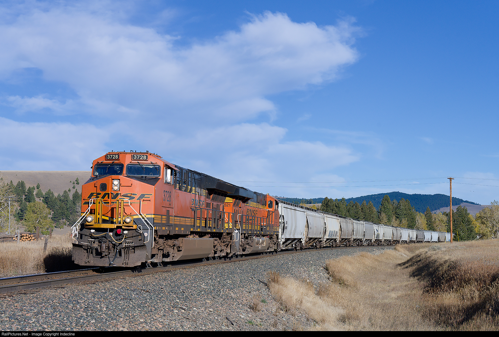 RailPictures.Net Photo: BNSF 3728 BNSF Railway GE ET44C4 at Elliston, Montana by Indecline