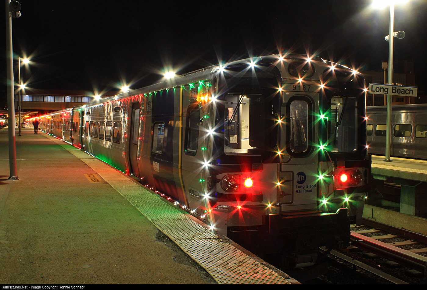 The LIRR's Holiday Lights train lays over in Long Beach between runs.