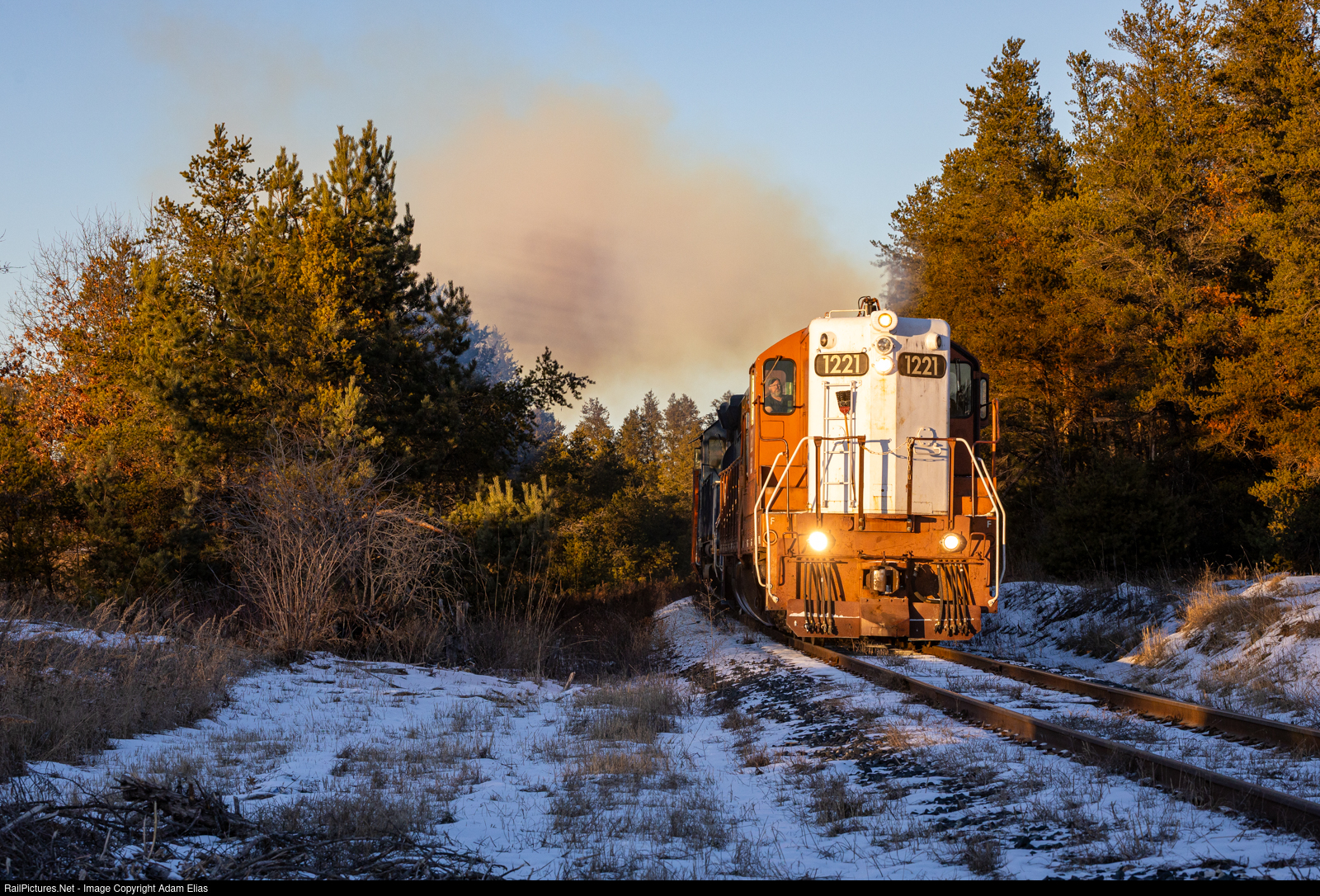 | ELS 1221 blasts out of Pembine after a brief stop to work some cars. This would be the last shot of the chase and it was arguably the best shot. Save the best for last! |