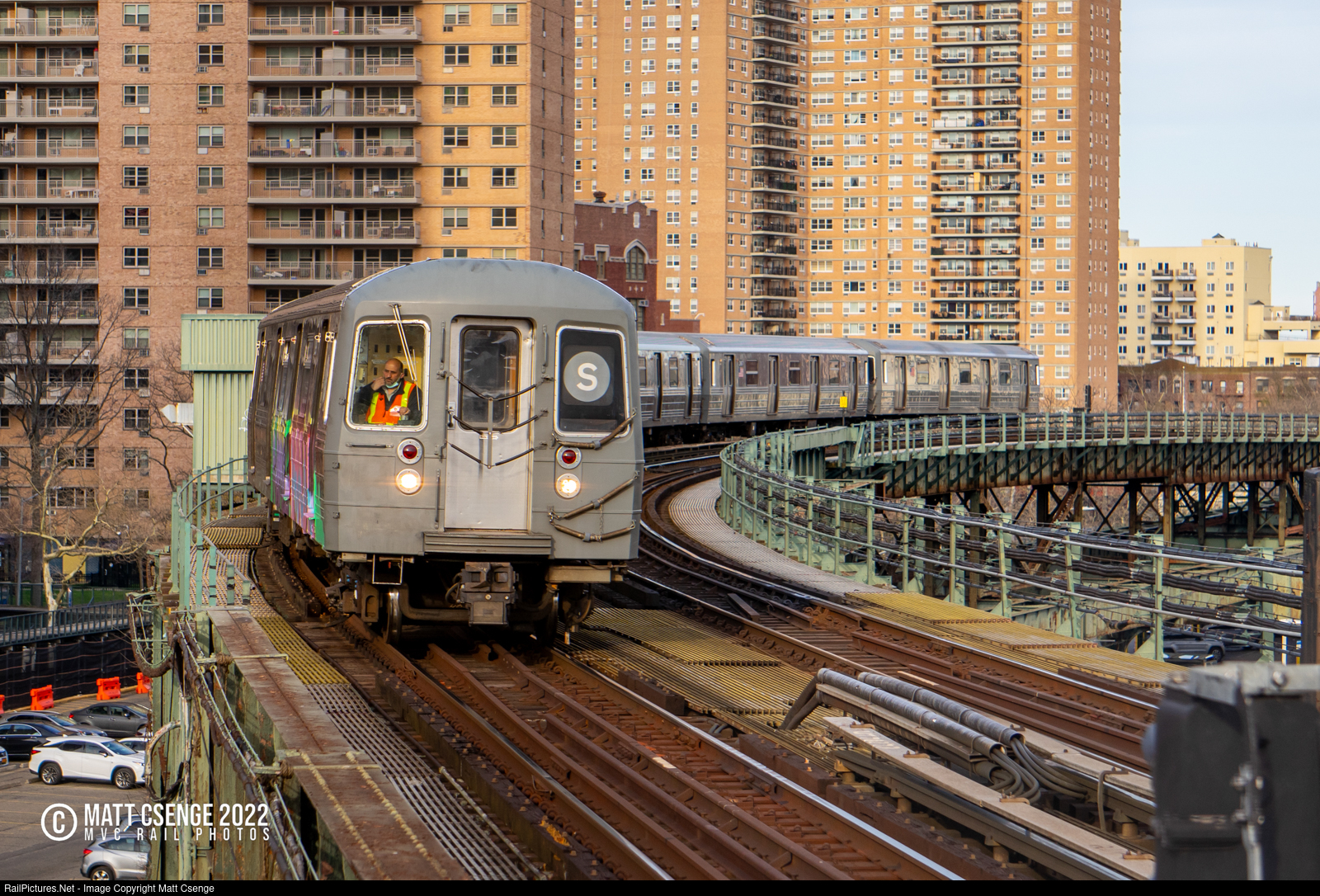 A shiny, six-car, stainless steel R68 (Westinghouse-Amrail, 1986-1988) shuttle train is seen sneaking into W 8th St Station, with a splash of spray paint on the side. A replacement 2-car set had just been brought up to Prospect Park to take the place of this one, which is headed to Coney Island Yard to have the graffiti removed. I've seen 4-car sets coupled to 2-car shuttles to bring the shuttle set up to Prospect Park, with the 4-car set returning alone to the yard - I thought so the yard operator had something to return in - but this kind of shuffling of paired cars makes the extra four seem unnecessary.