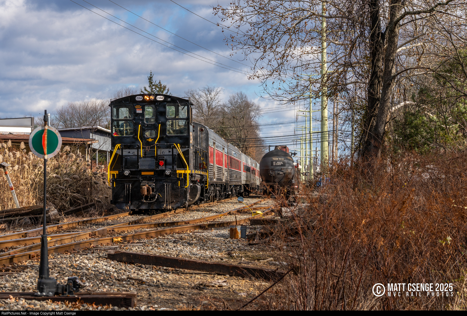 Morristown & Erie Railway (ME) MP15DC no. 2354 brings up the rear of the Whippany Polar Express (train 1132) as it returns to the Whippany Railway Museum. |