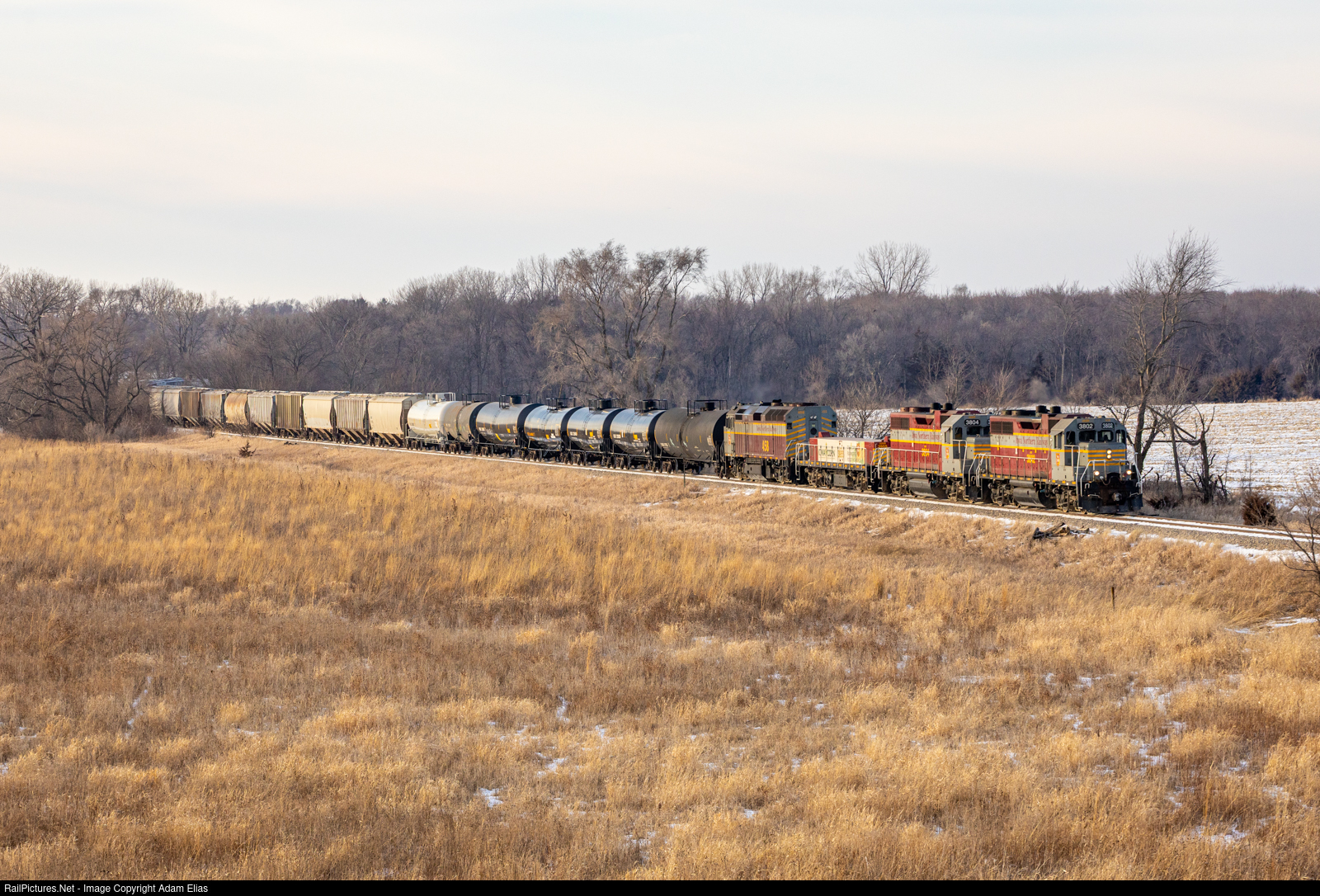 RailPictures.Net Photo: IANR 3802 Iowa Northern EMD GP38-2 at Nora Springs, Iowa by Adam Elias