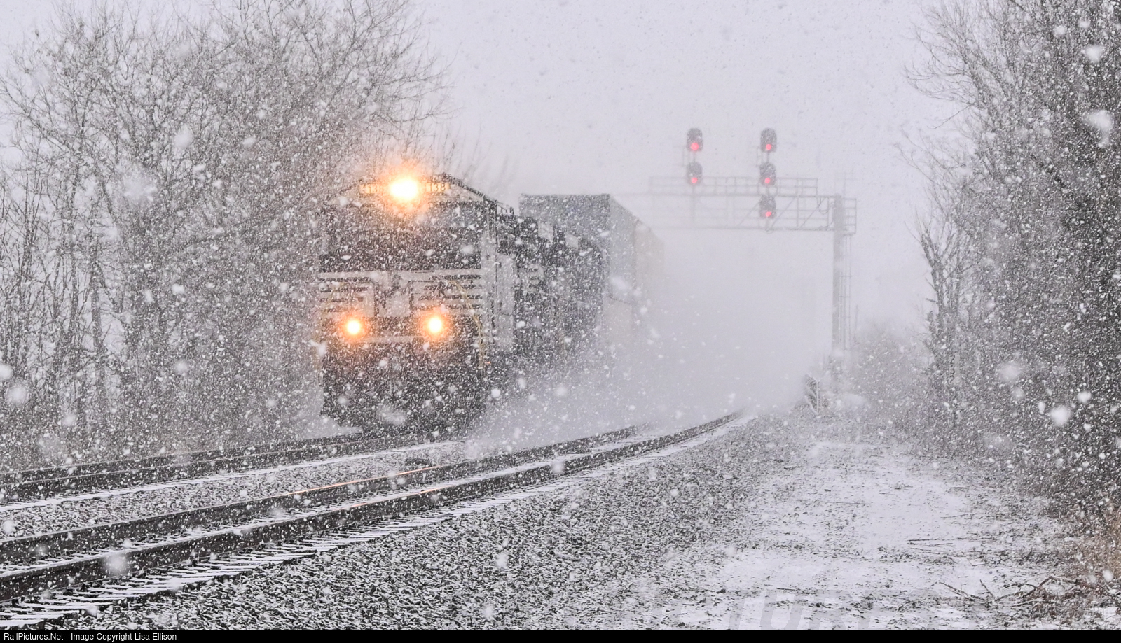 | The NS 22x blasts its way through CP 232 and a serious snow squall in Huron, Ohio. |