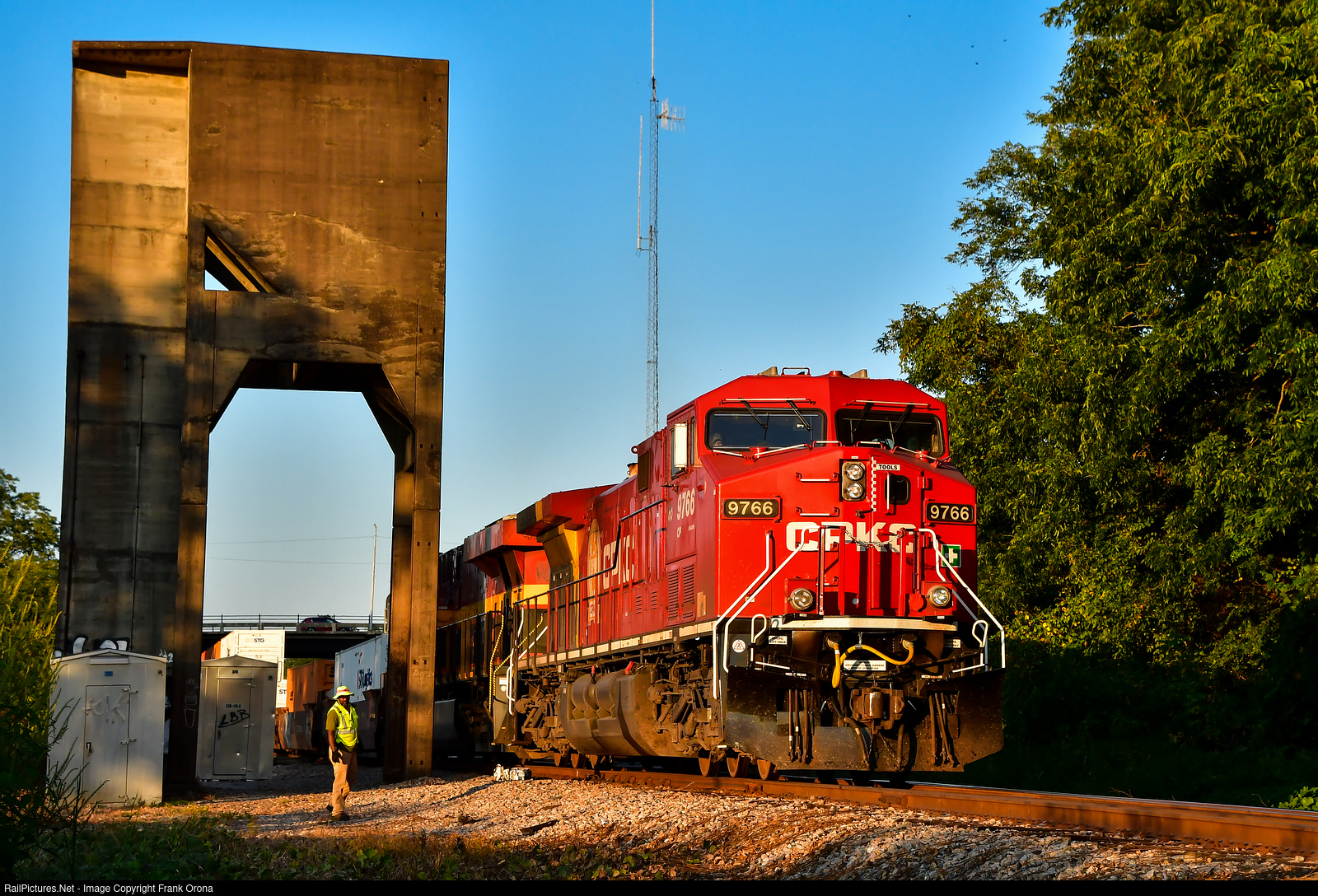 The brand new paint livery of the CPKC is found on a new GE rebuild leading this day’s M527. The train is comprised of 62 cars with 9 intermodal containers at the front and is about to take the siding at Opelika for a meet with M602. Click here to see the next special paint scheme to come through this area.