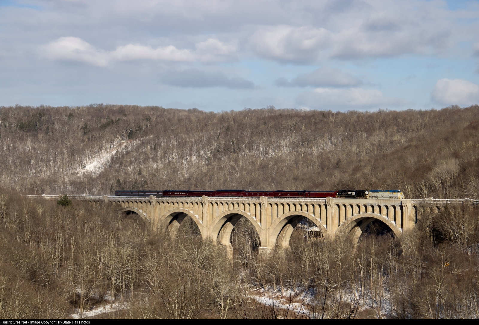 After running the Toys for Tots train the day prior, NS 955 returns to Altoona, crossing over the Martins Creek Viaduct in Kingsley on former D&H trackage.