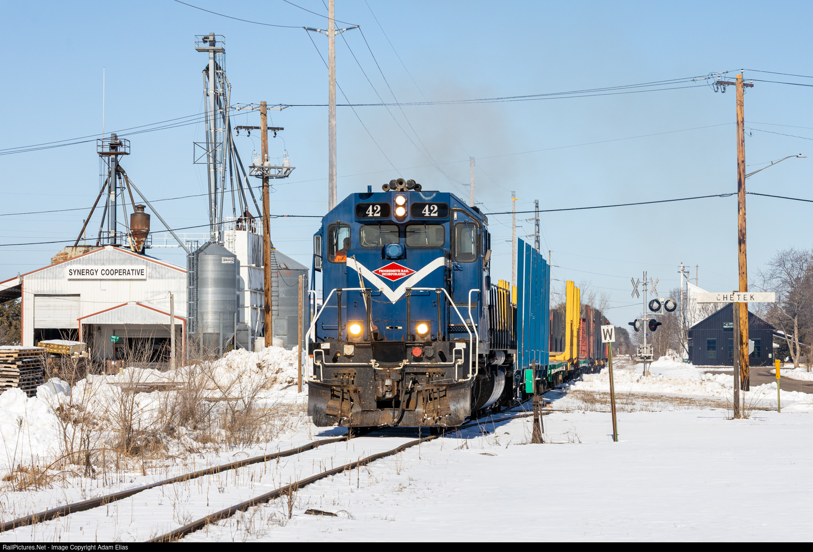 | The Southbound Wisconsin Northern train heading South for Chippewa Falls with a solo SD38-2 for power. It was my first time shooting this railroad and it was nice to get something other than the usual SD40M-2s (which are just as nice). |