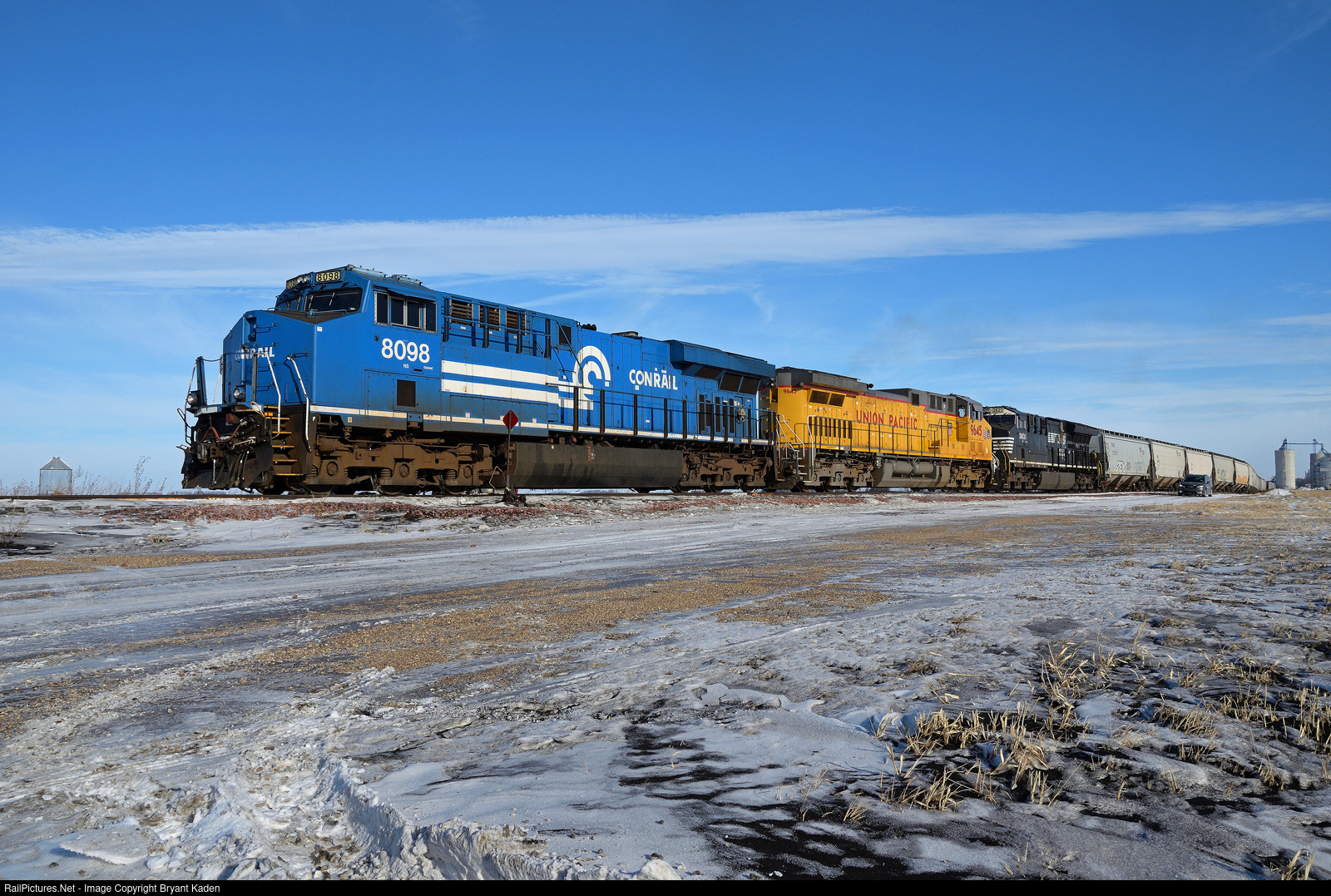 The Conrail heritage unit works to help put a unit grain train together at the elevator in Brewster, MN alongside the former Chicago, St Paul, Minneapolis & Omaha (a.k.a. the Omaha Road). Appropriately enough, many of the hopper cars in the train still bear CMO reporting marks, offering their own subtle nod to history.