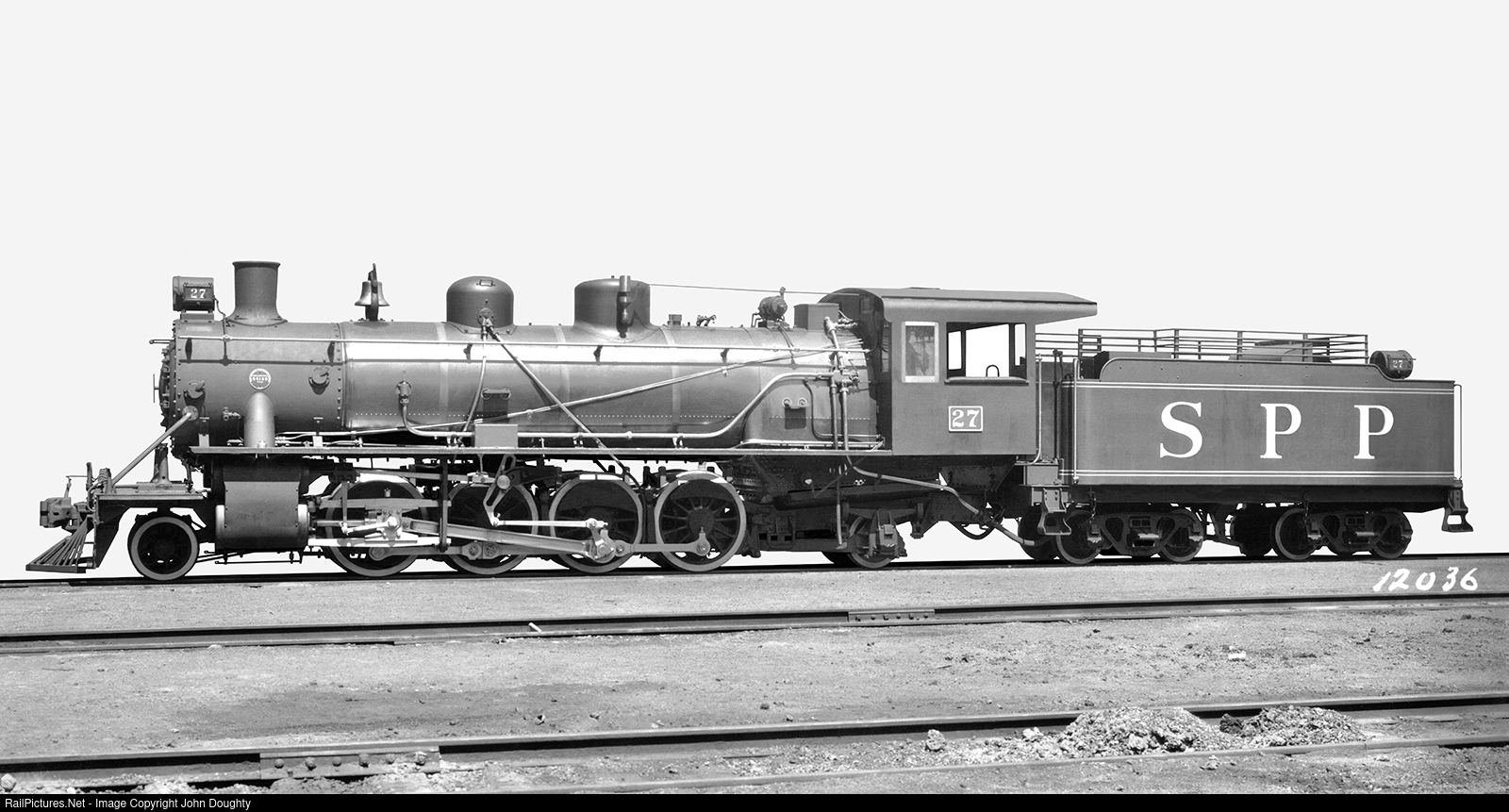 This 2-8-2, number 27, was built by the Baldwin Locomotive Works for the Cia. Ferroviaria Sao Paulo-Parana (Brazil). The total engine and tender weight was 207,950 lbs., and the tractive effort was 27,100 lbs. BLW construction number was 64,149. This Baldwin Locomotive Works builders photo card is from the John R. Doughty collection.