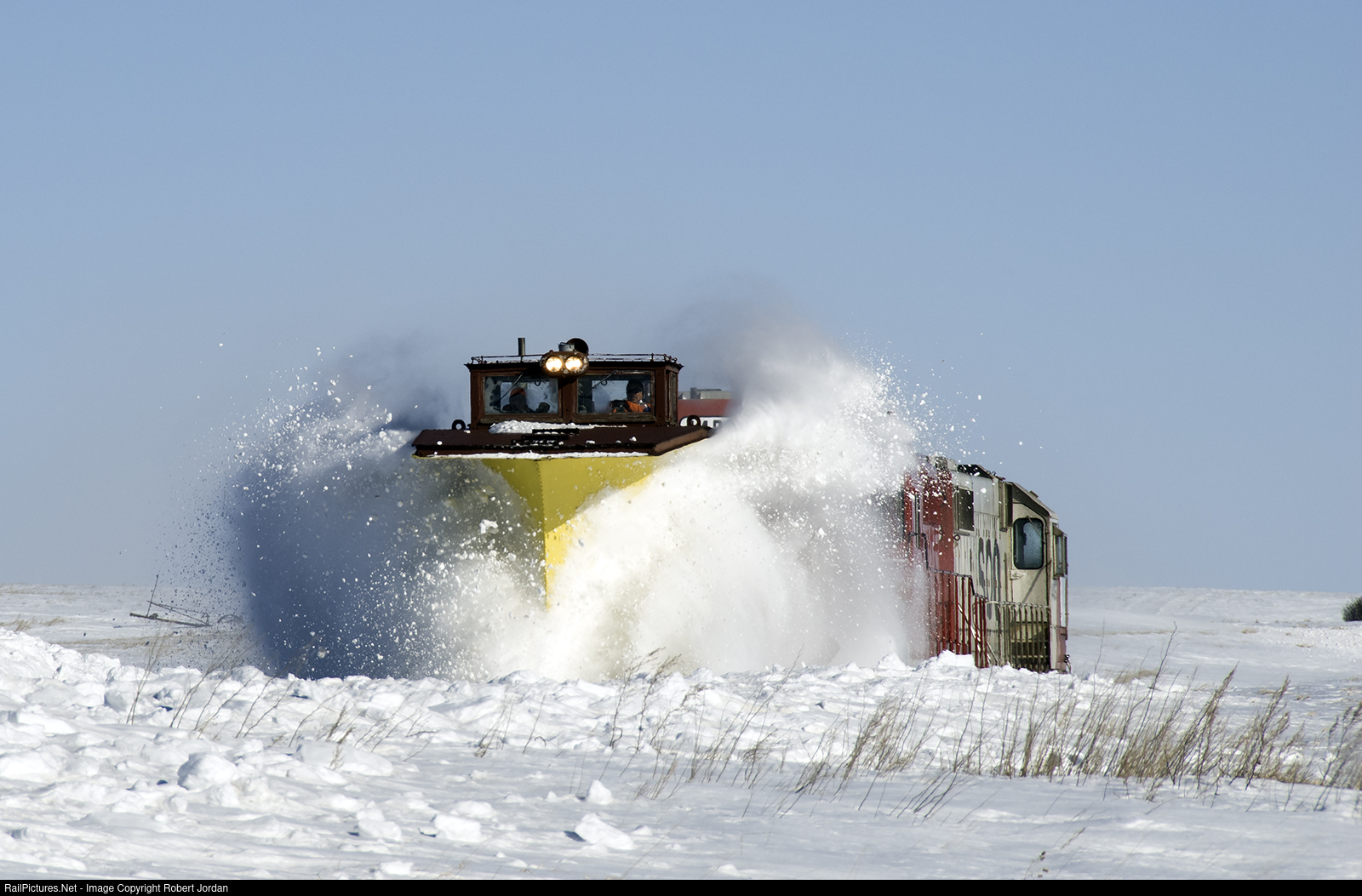DMVW hustles SOO plow train toward Max to work the New Town line.