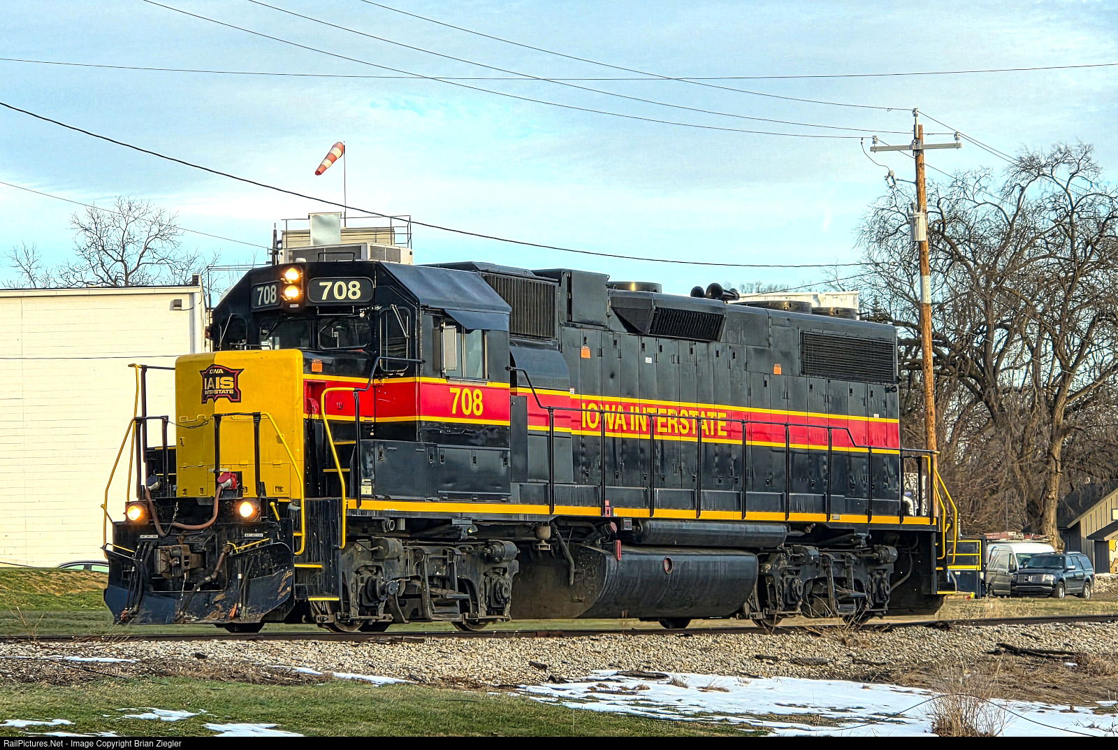 | Light power IAIS 708 heads up the Grimes line. After a couple of 40+ degree days, little remains of the 18" of snow that has fallen in the DSM area so far this winter.