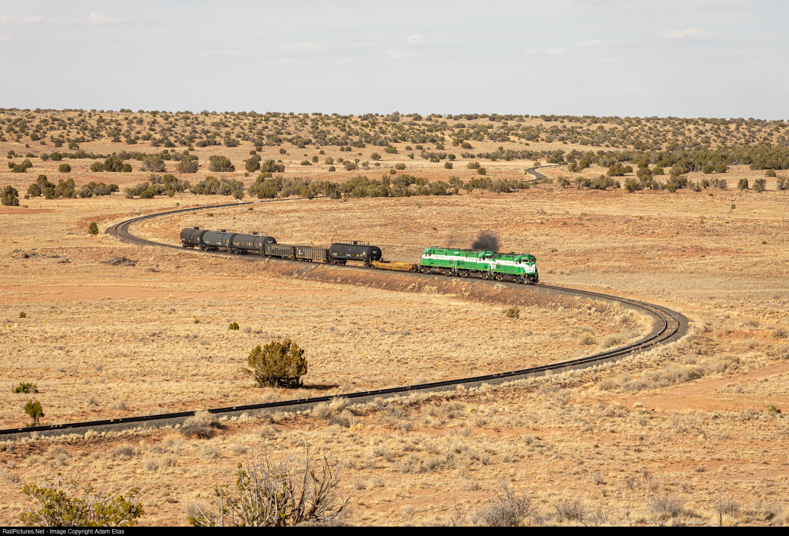 | A C424 and two C420s bring their seven cars into the outskirts of their home base of Snow Flake, Arizona. |