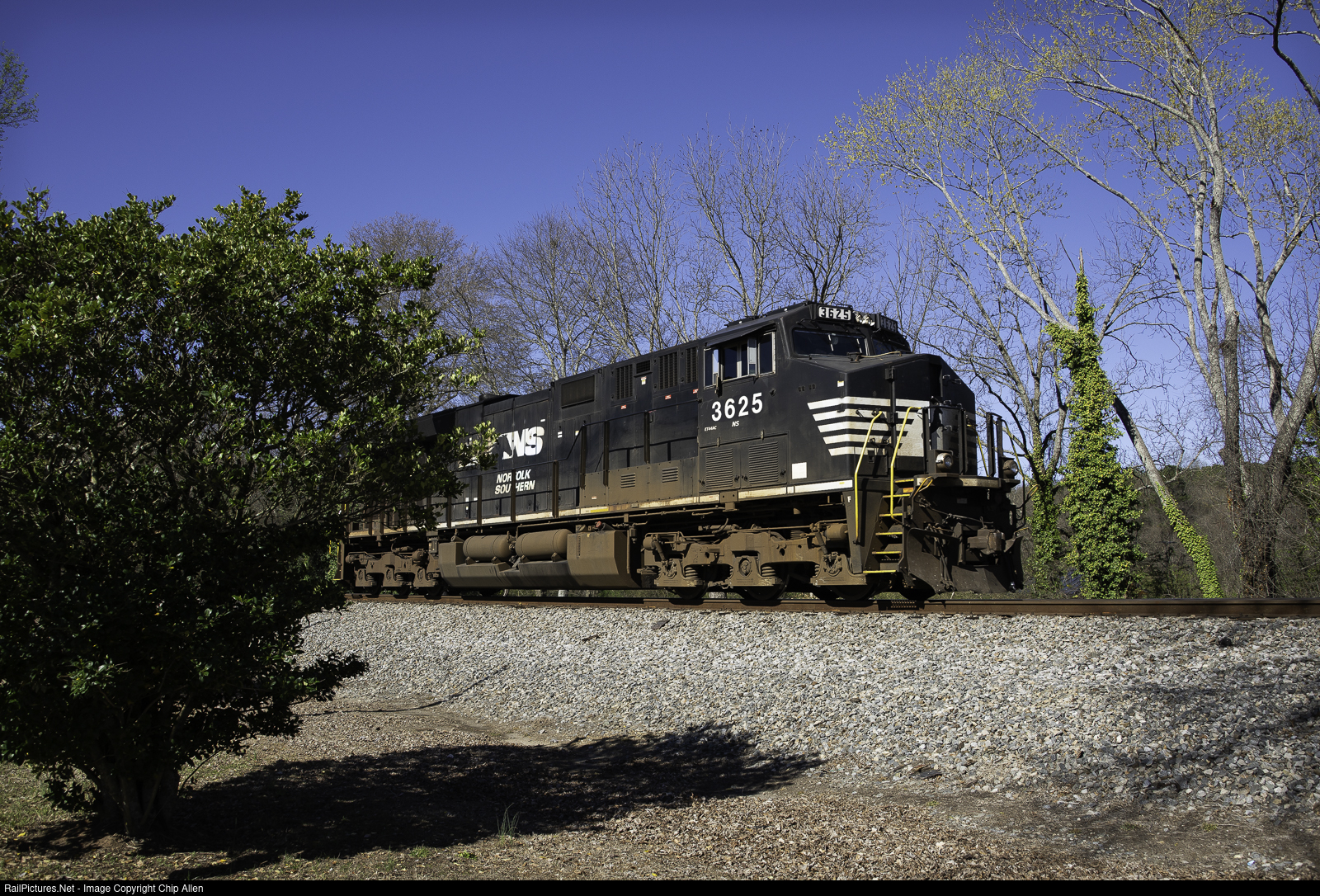 | Local P67 rolls south to begin its industry work in Flowery Branch with NS 3625 for power. This unit is unique for its Southern-style number boards and black unibrow resulting from wreck repairs after hitting a coal chute on Watco rails. |