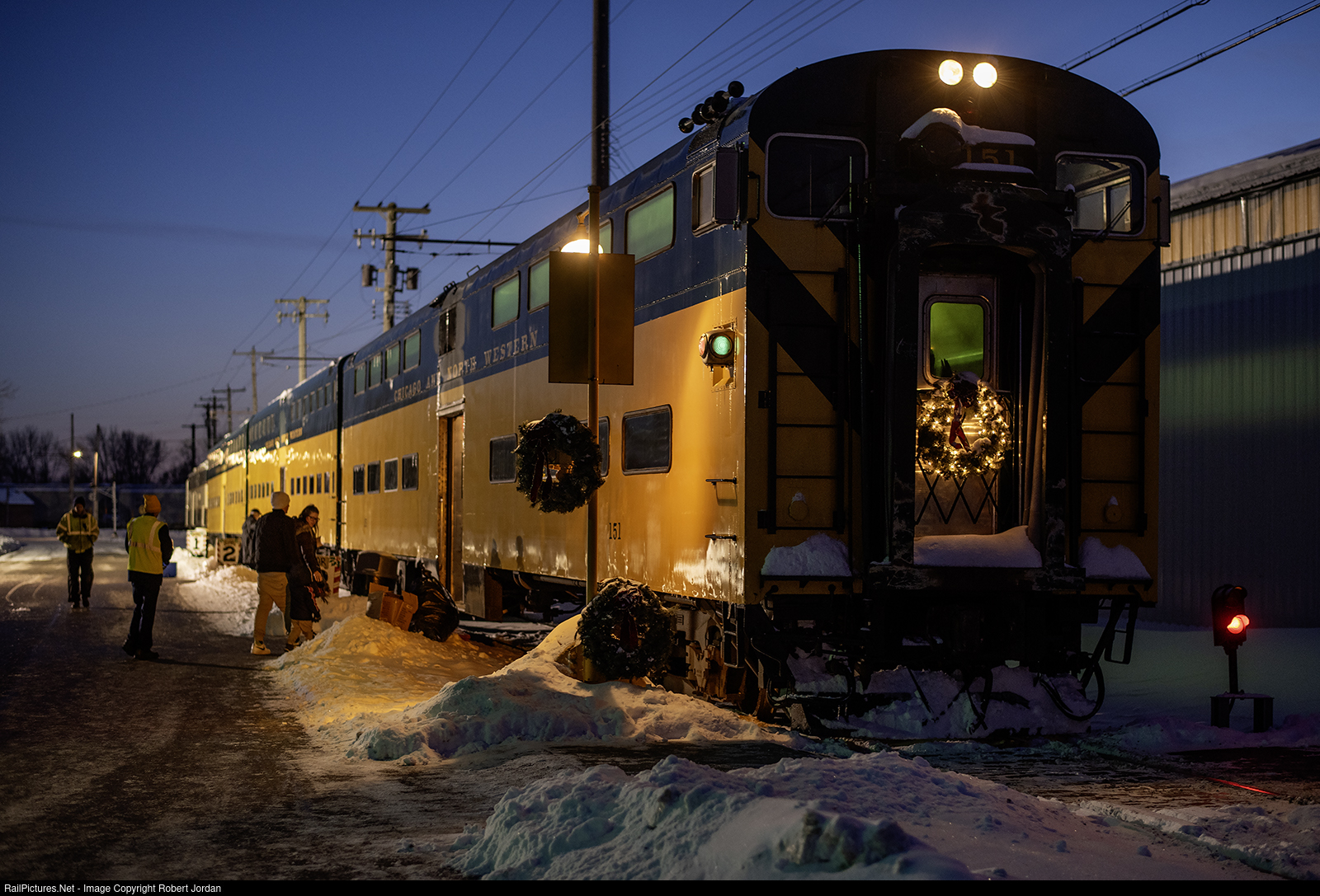 Passengers wait to load late run of IRM CNW holiday train.
