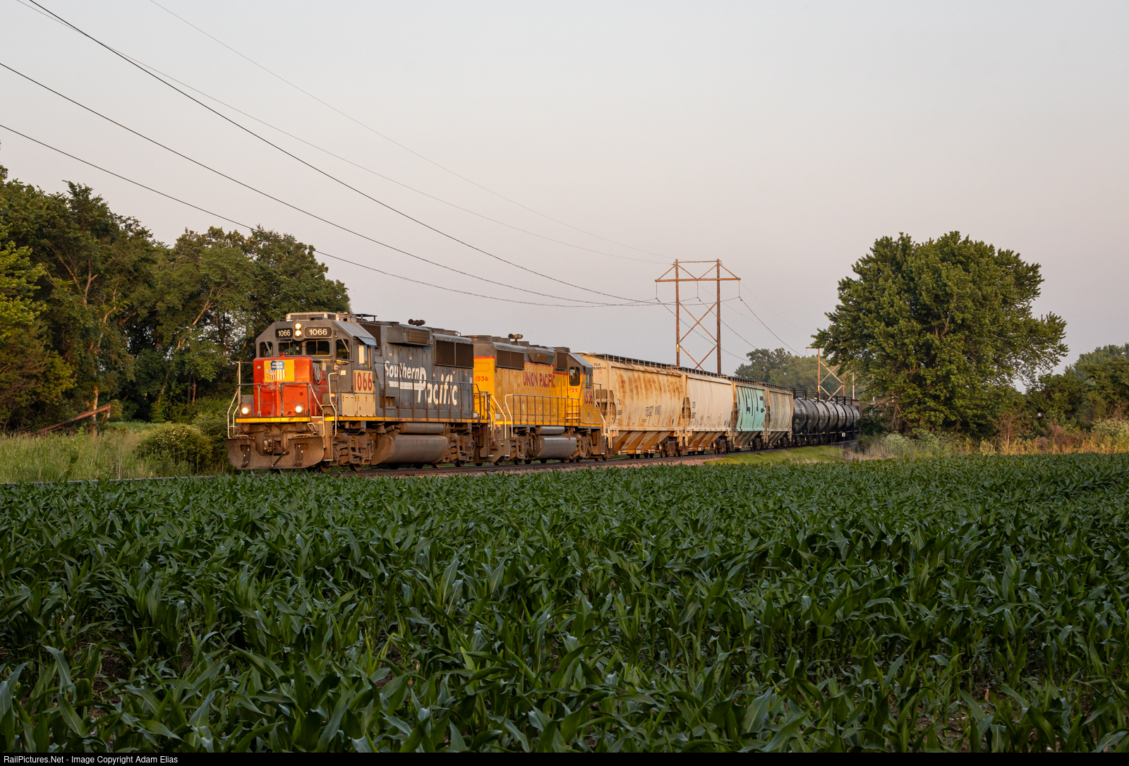 | The Osky Job heading back North after their trip to Eddyville. These would be the only sun rays we would get on the train thanks to a late departure North and haze. |