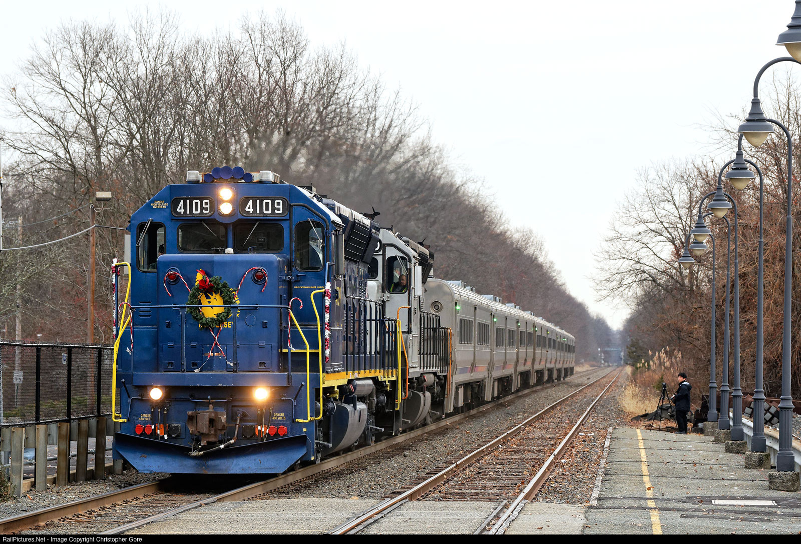 NJ Transit's CNJ heritage GP40PH-2 4109 leading Tri-State Railway Historical Society's Santa Train at Lincoln Park.
