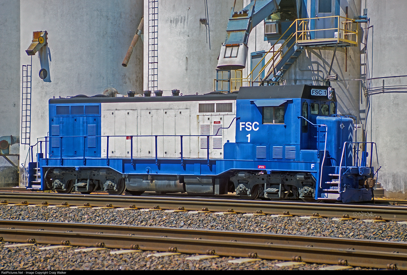 Santa Fe 242L was rebuilt into CF7 2536 in January 1974. It was eventually sold to TennKen Railroad as their TKEN 2536. The TKEN then sold it to Nashville & Eastern, where it was often used on their Broadway Dinner Train. NERR sold it, too, to Rail Link, a subsidiary of Genesee & Wyoming Inc., where it wore number RLIX 536. From there, It was sold to DTE Transportation Services Ltd as 536 and resold as Farmland Services Cooperative, as seen here, numbered FSCX 1.