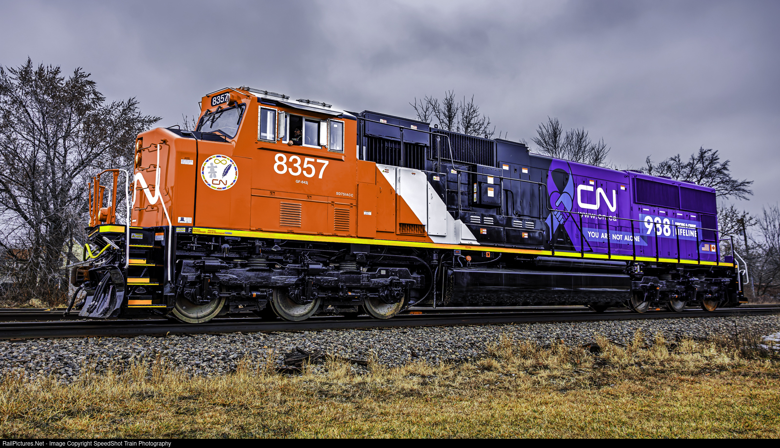 CN #8357 You are not alone unit unveiling at Durand Union Station in Durand Michigan. This unit was designed to bring awareness to suicide prevention and dial #988
