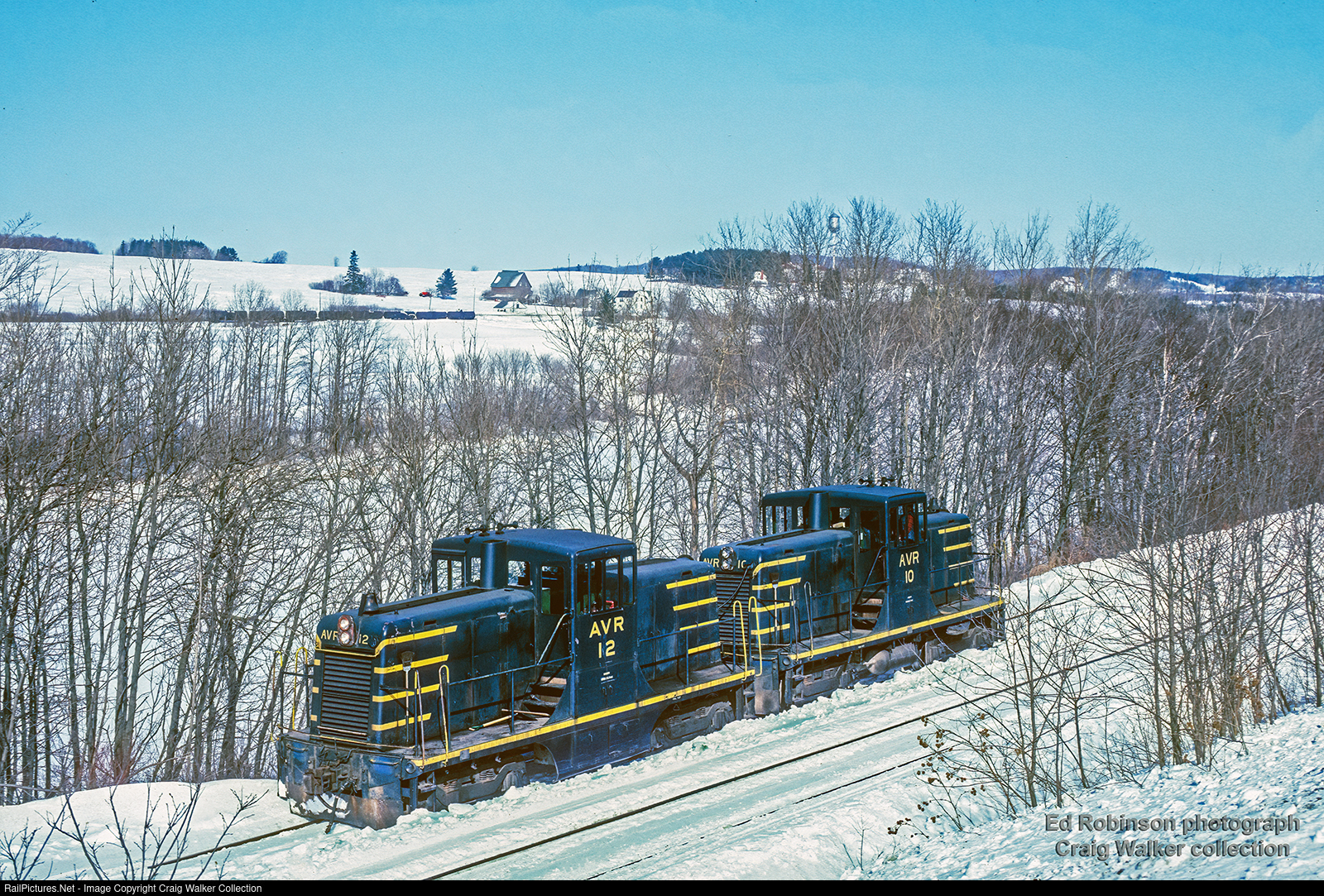 But on a wintery February 1983 day, AVR 44 ton diesels 12 and 10 were photographed in Presque Isle, thirteen years before the inevitable shutdown. (The AAR reporting mark AVR was then assigned to Pennsylvania's Allegheny Valley Railroad.)