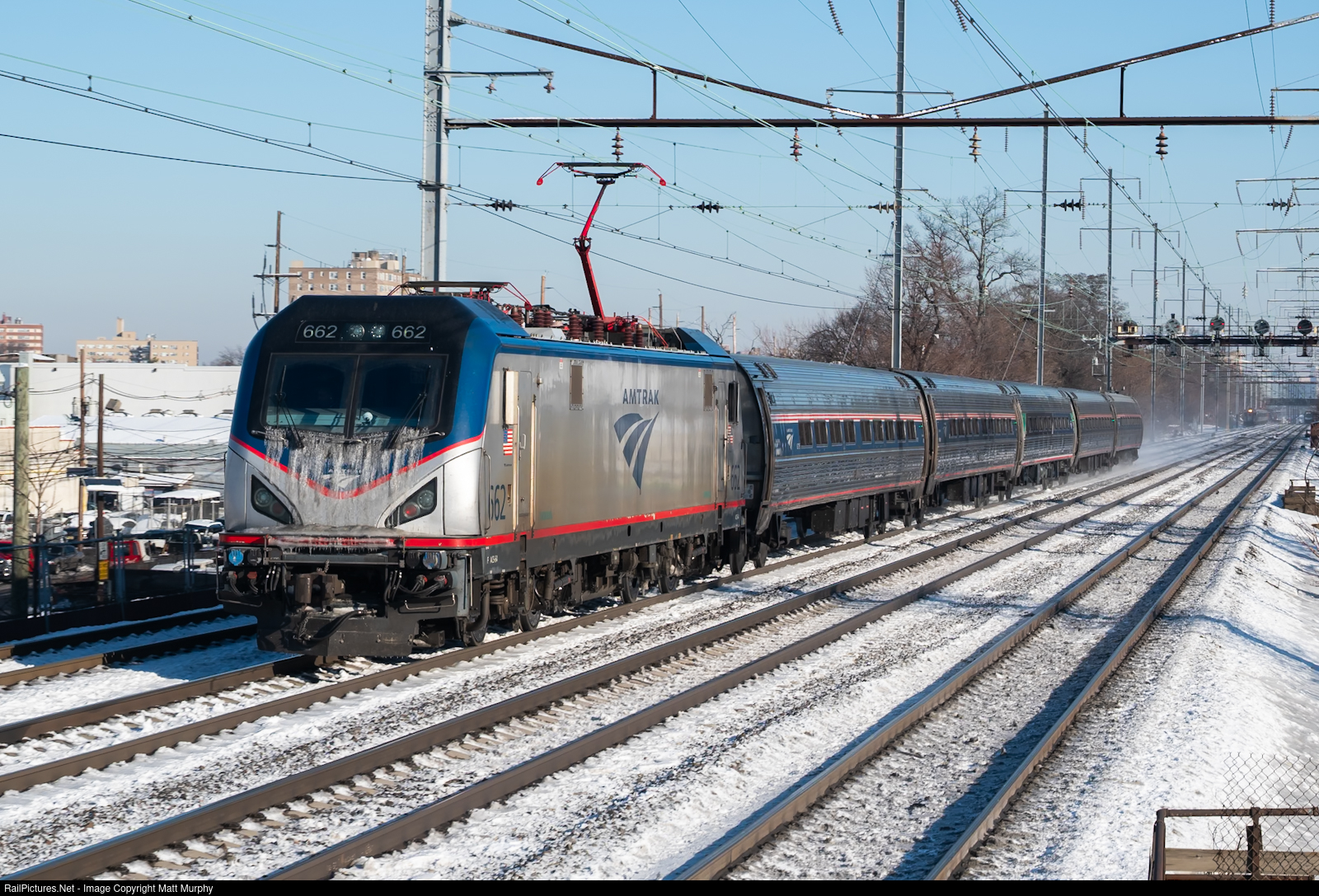 “Frostbite” — On December 16th, I watched some NEC action the day after a winter front hit the northeast. Among the traffic, we see a sprinter that was clearly left outside in the winter storm the night before. This one, AMTK 662, pulls Keystone 643 Westbound