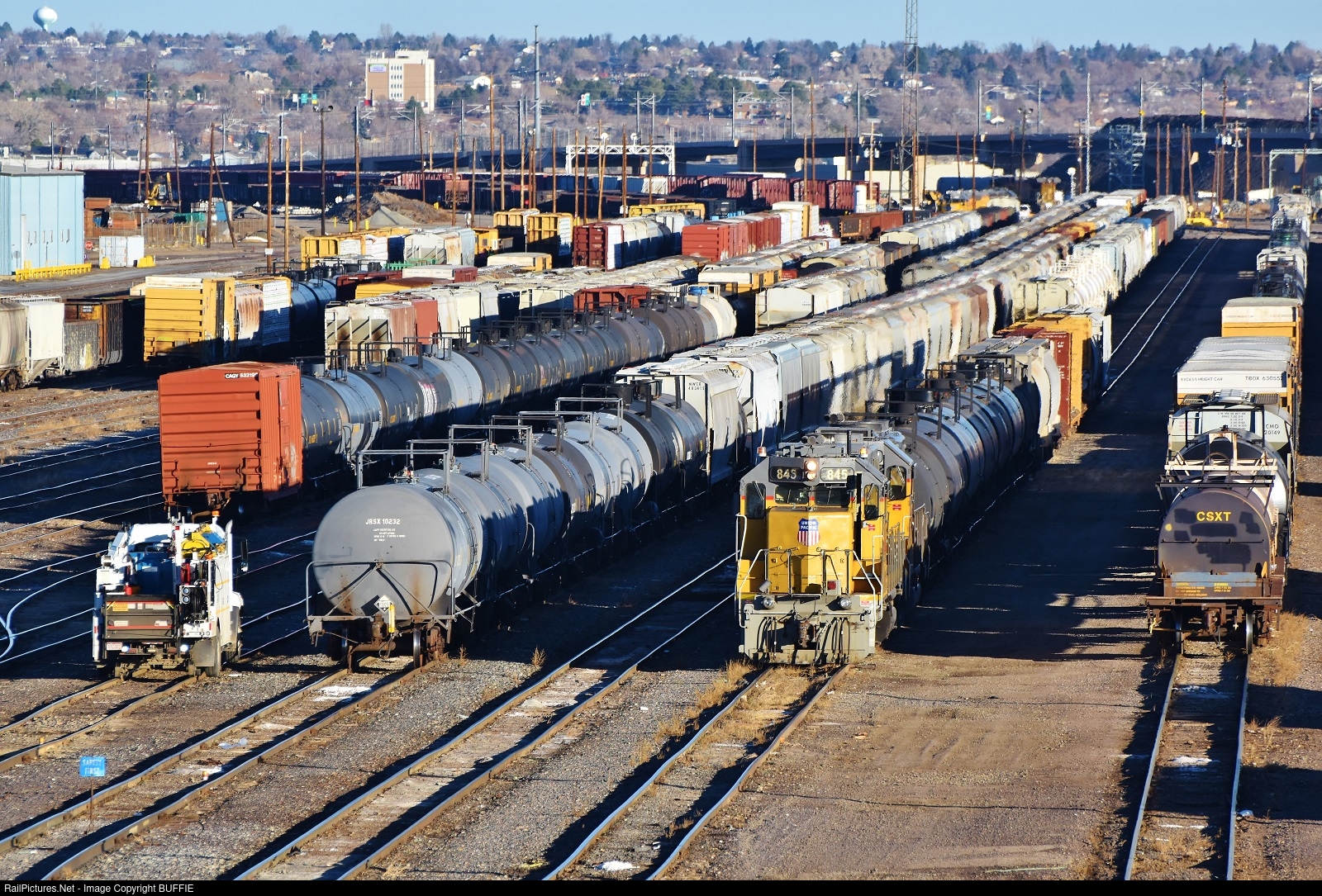 UP 845 (GP38-2) works deep in the North Yard in Denver, Colorado.