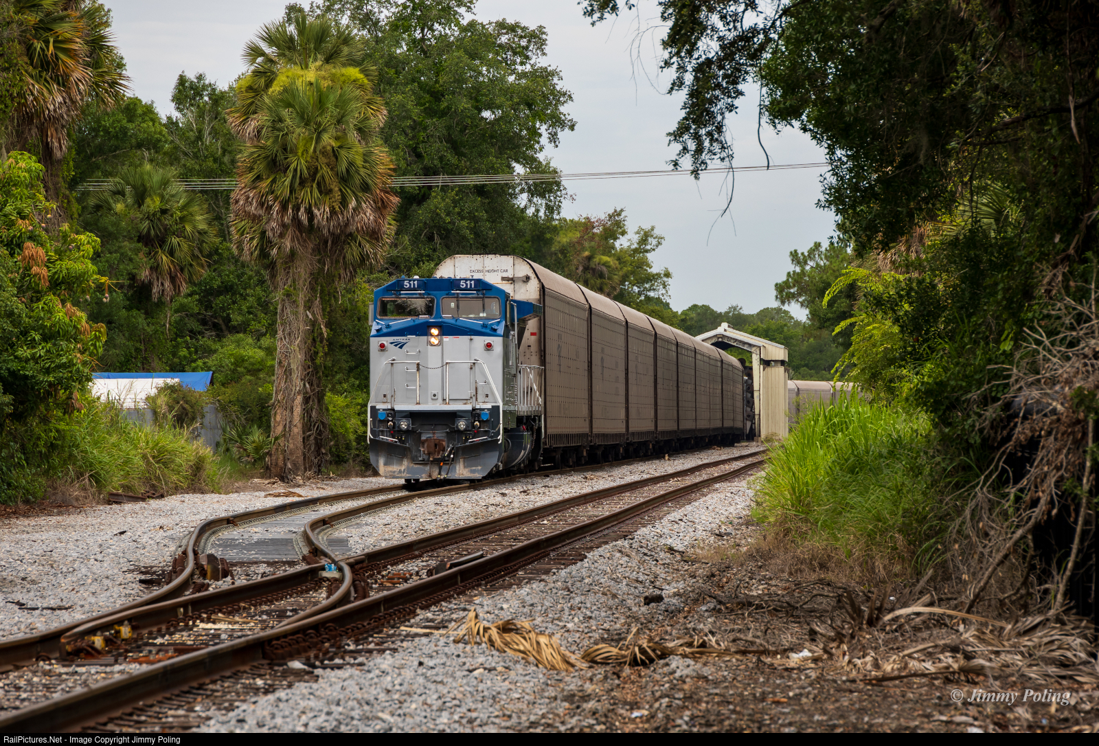 | Amtrak B32-8WH 511 is working on breaking down the autorack cut from southbound Auto Train, P053, at the Sanford terminal. This location is just east of the Auto Train terminal along the CSX Aloma Spur. |
