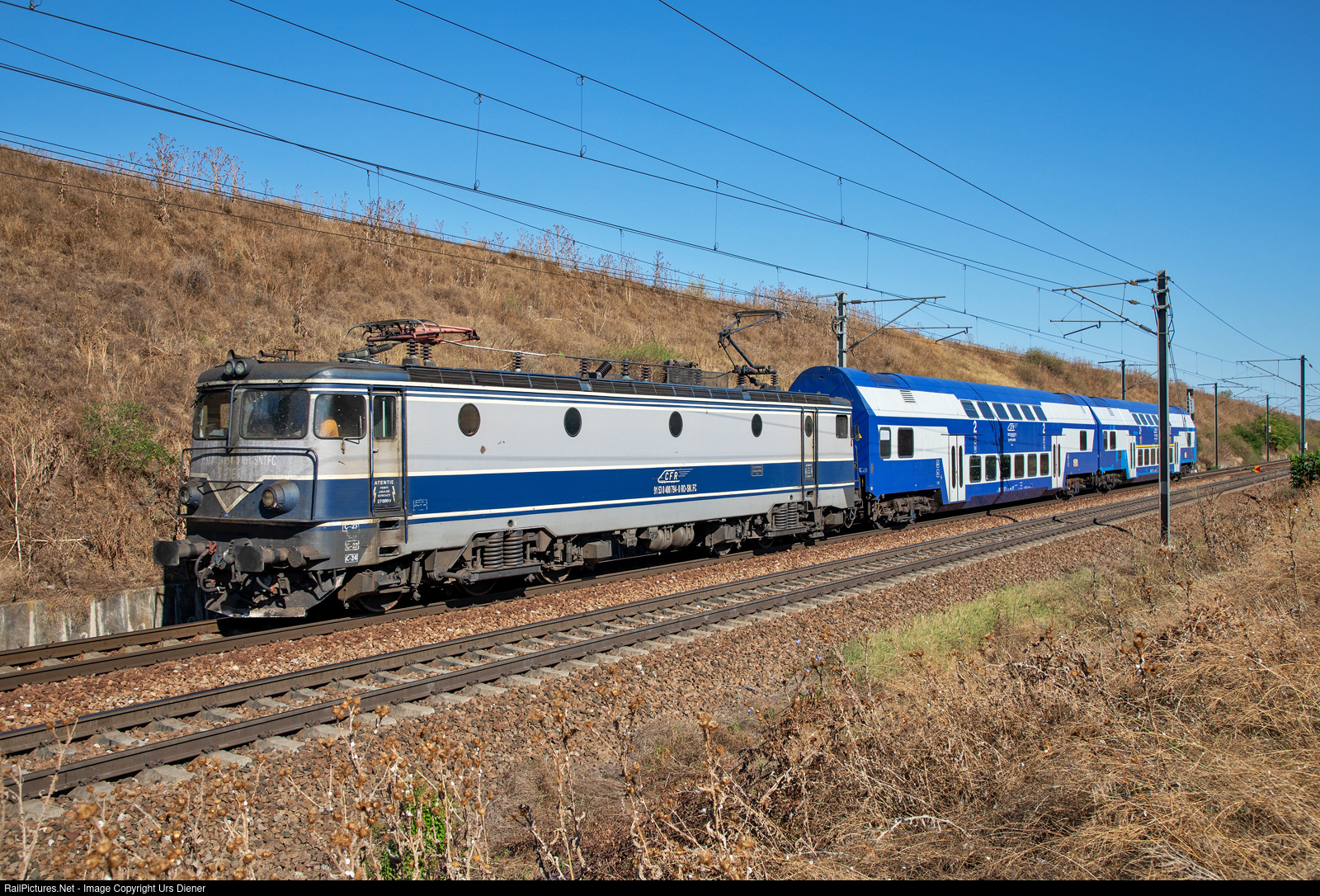 | CFR locomotive 40 0794 is pulling train R 8001, consisting of two doubledeck coaches, from Bucharest North to Constanta.