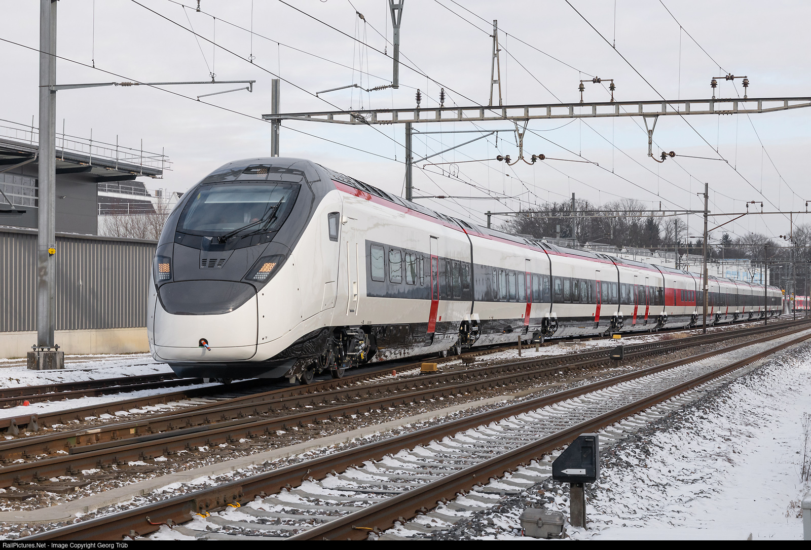 | The Austrian railway company Westbahn has ordered three SMILE high-speed trains from StadlerRail for service from Vienna via Semmering and the new Koralmbahn to Klagenfurt and Villach. The trains are technically identical to the Giruno RABe 501 # 001 to # 041 trains operated by SBB. The first new Westbahn train, RABe 501 # 042 (93 85 0 501 042-2 CH-WSTBA), is leaving the Stadler commissioning center in Erlen for the very first time as test run 97346 to Sulgen.