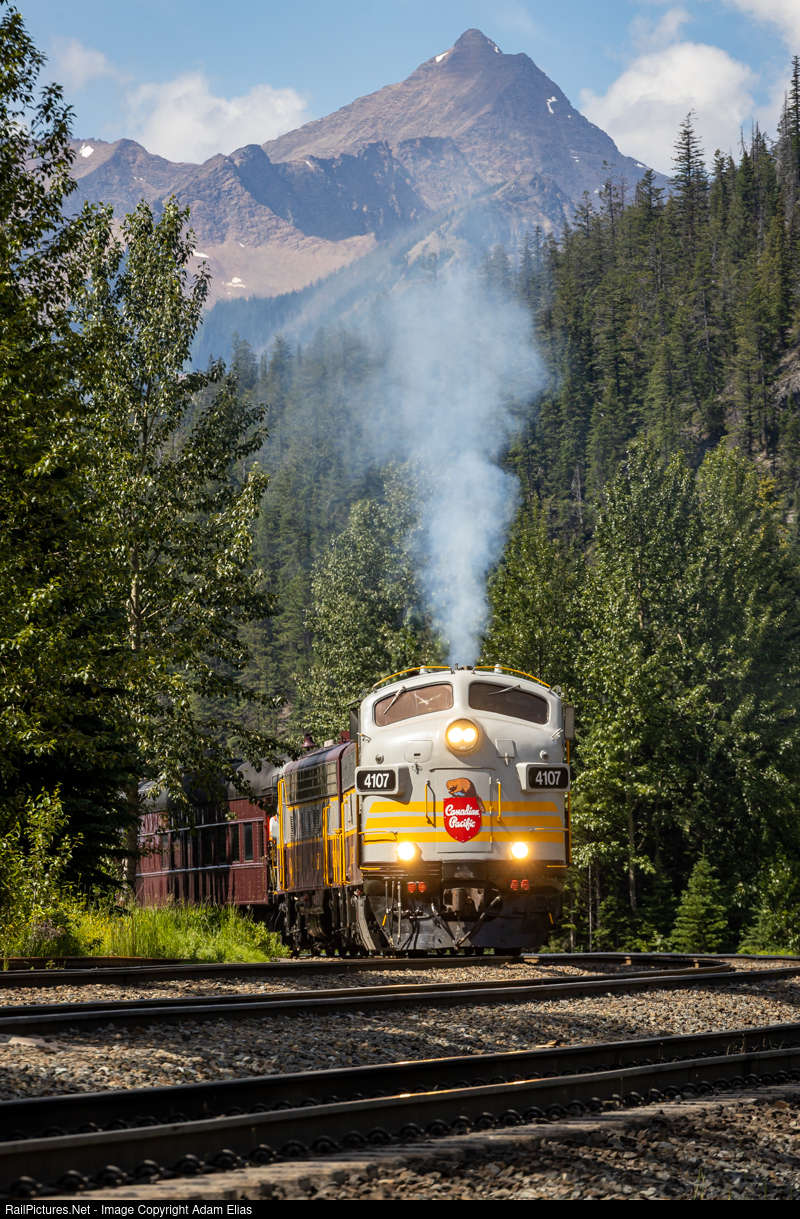 | CP 4107 charges out of Field with their transet for Calgary in tow. It was cool to get the 4107 leading, which isn't commonly done. |