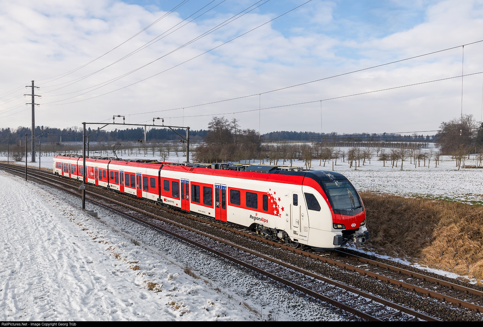 | Brand new "Flirt Evo" RABe 533 # 709 from StadlerRail for the Regionalps on a transfer run 32461 from Erlen via Romanshorn VL-Rorschach to Buchs SG, between Erlen and Oberaach. |