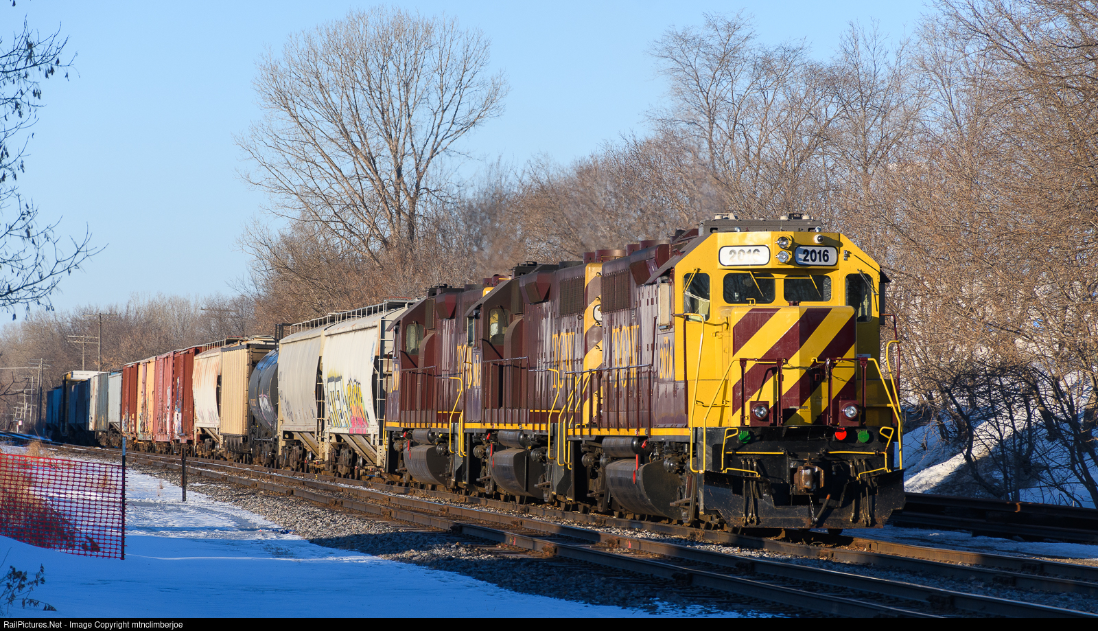 A trio of GP38-2's lead the Twin Cities & Western Railroad's St. Paul Turn as it sits in Hopkins, Minnesota after arriving overnight. Once the train gets a crew, they will head towards the Twin Cities to interchange with various connecting railroads.