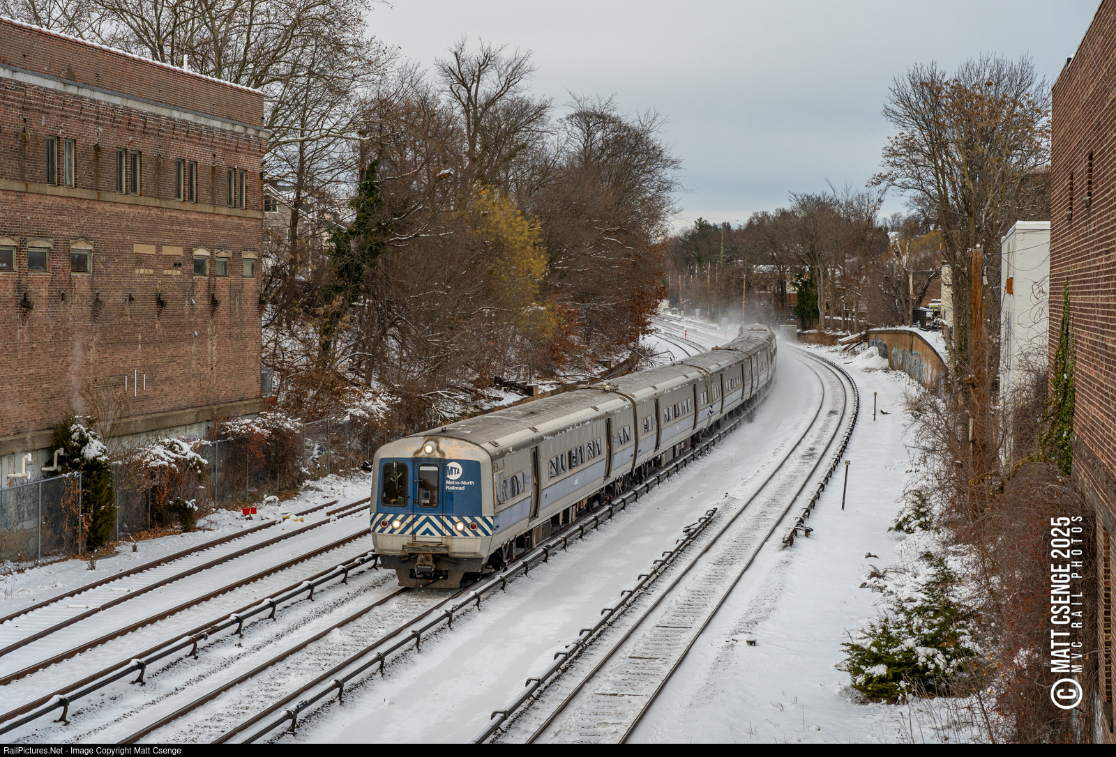 Metro-North Railroad (MNR) M3A car 8060 is the lead unit on six-car Harlem Line train 660, seen racing towards Tuckahoe Station on the way down from Southeast. |