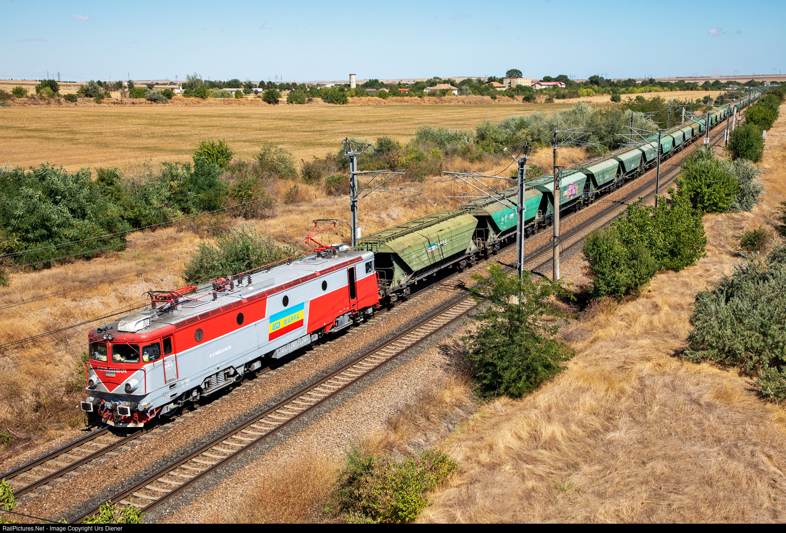 The six-axle locomotive 40 0533 of CFR MARFA is pulling an empty grain train from the Black Sea towards the west.