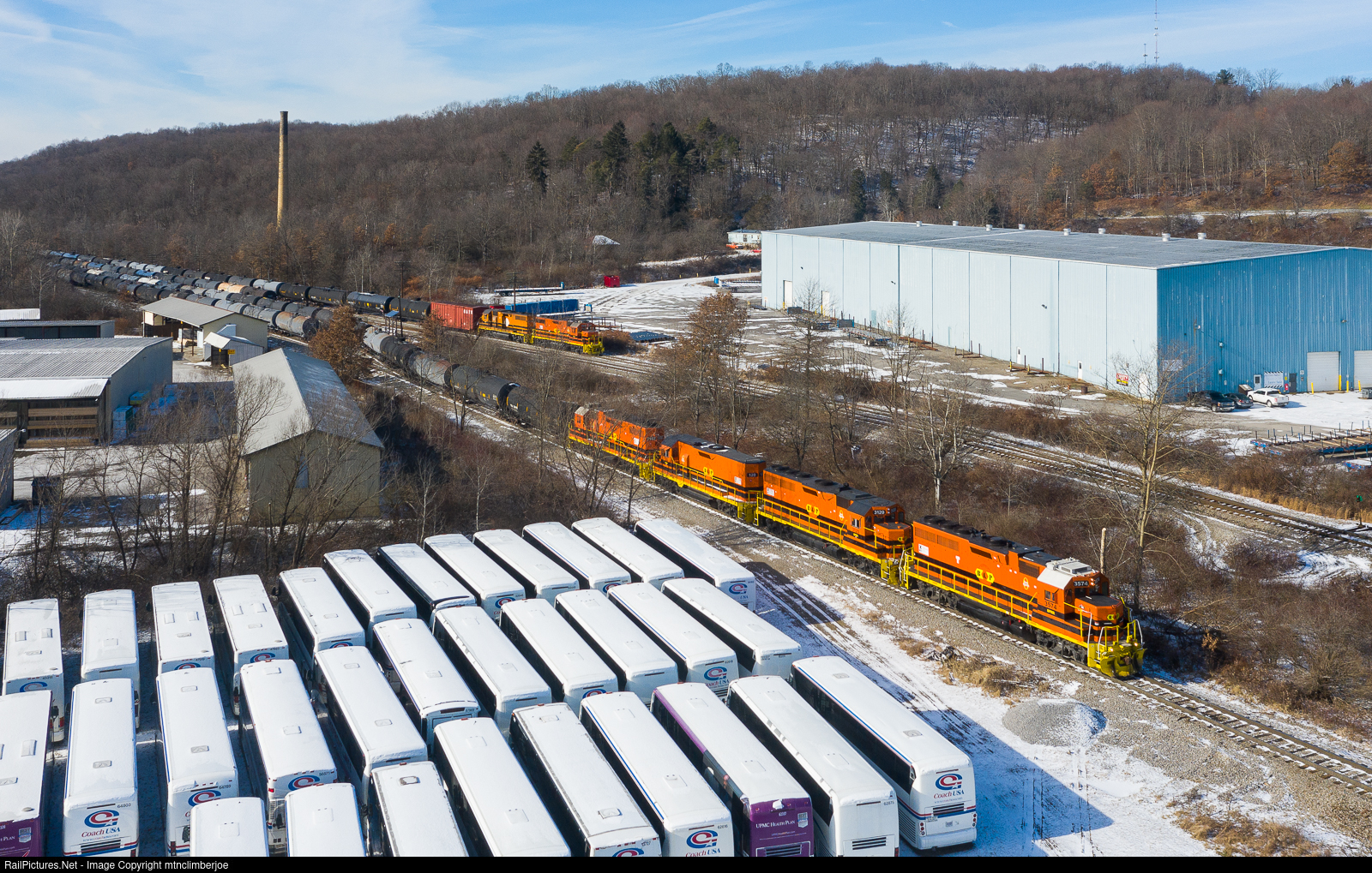 A quartet of GP's work the yard as they put together the Buffalo & Pittsburgh BT3 in East Butler, Pennsylvania. The crew would spend the next few hours of the morning switching before heading up the Northern Subdivision towards the refineries in Karns City and Petrolia to work the industries. In the background, another pair of GP's are assigned to the local yard switcher drilling out cars from the previous day's road freight.