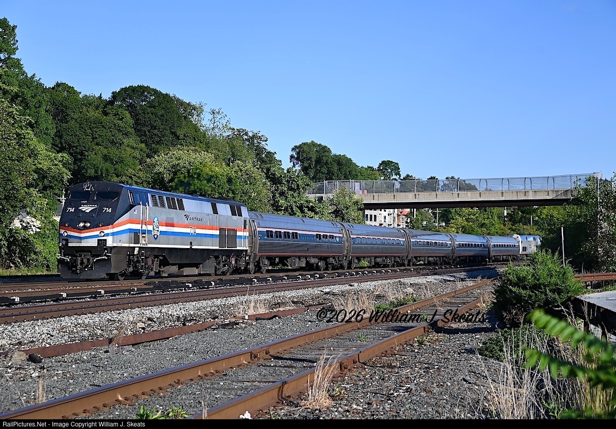 | Amtrak P32AC-DM 714, five Amfleets and P42DC 46 in 50th Anniversary paint scheme. Train 237 to Albany-Renssealer. |