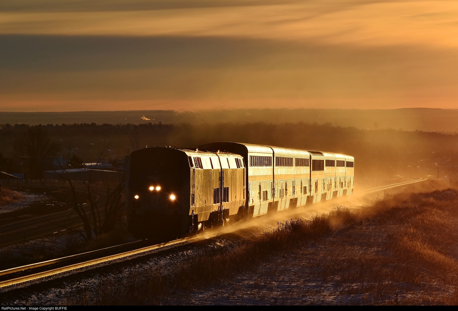 | The Amtrak Winter Park Express Ski Train leaves Denver, Colorado and heads west on the Moffat Tunnel Sub under a golden sunrise and will be at the famed ski resort within 2 hours.