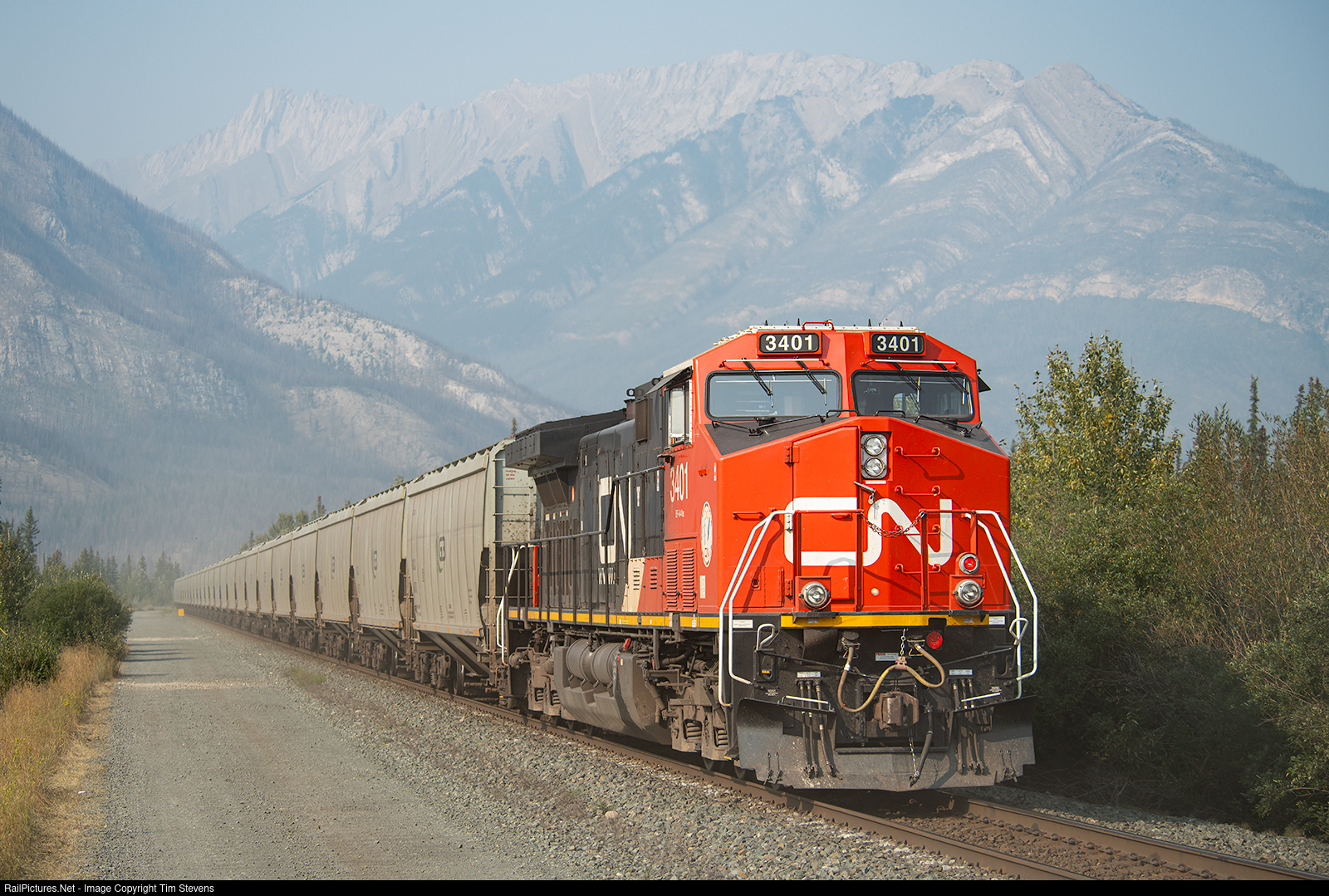 RailPictures.Net Photo: CN 3401 Canadian National Railway GE AC44C6M at Snaring, Alberta, Canada by Tim Stevens