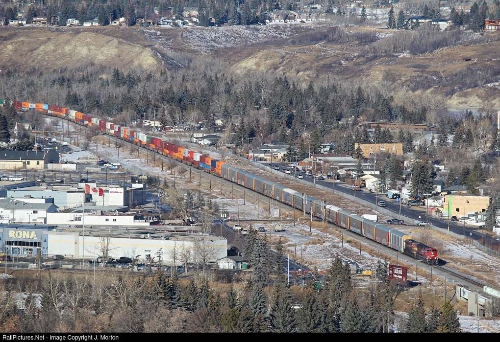 CP 7039 leads train 114 east in Calgary. You wouldn't know it was January today. Warm winds came in today and melted nearly all the snow.