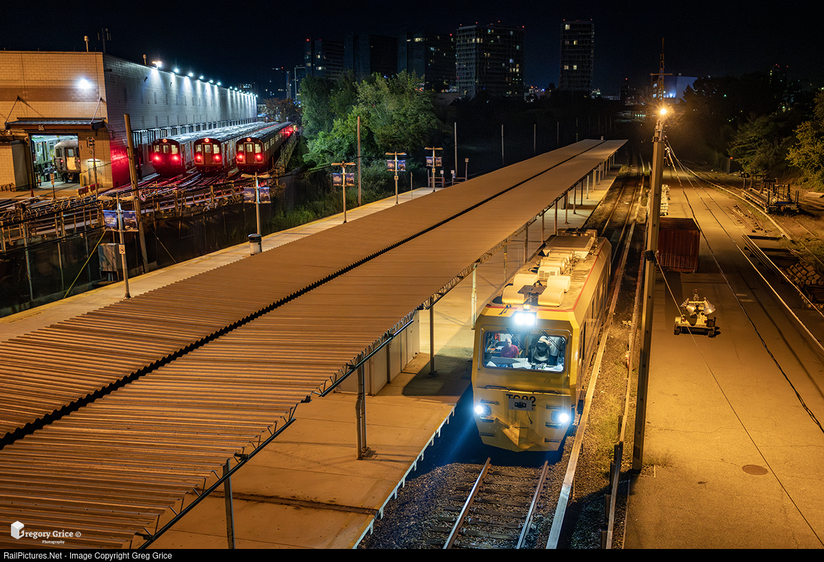 During the early morning hours of September 12th, 2025, Long Island Rail Road’s "TC-82" Track Geometry Vehicle collects data on Track 4 in Shea Yard along the Port Washington Branch in Queens, New York. New York City Transit's Corona Maintenance Facility for the Flushing Line can be seen to the left. Built by Plasser American Corporation, TC-82 is used to perform track inspections across the LIRR system.