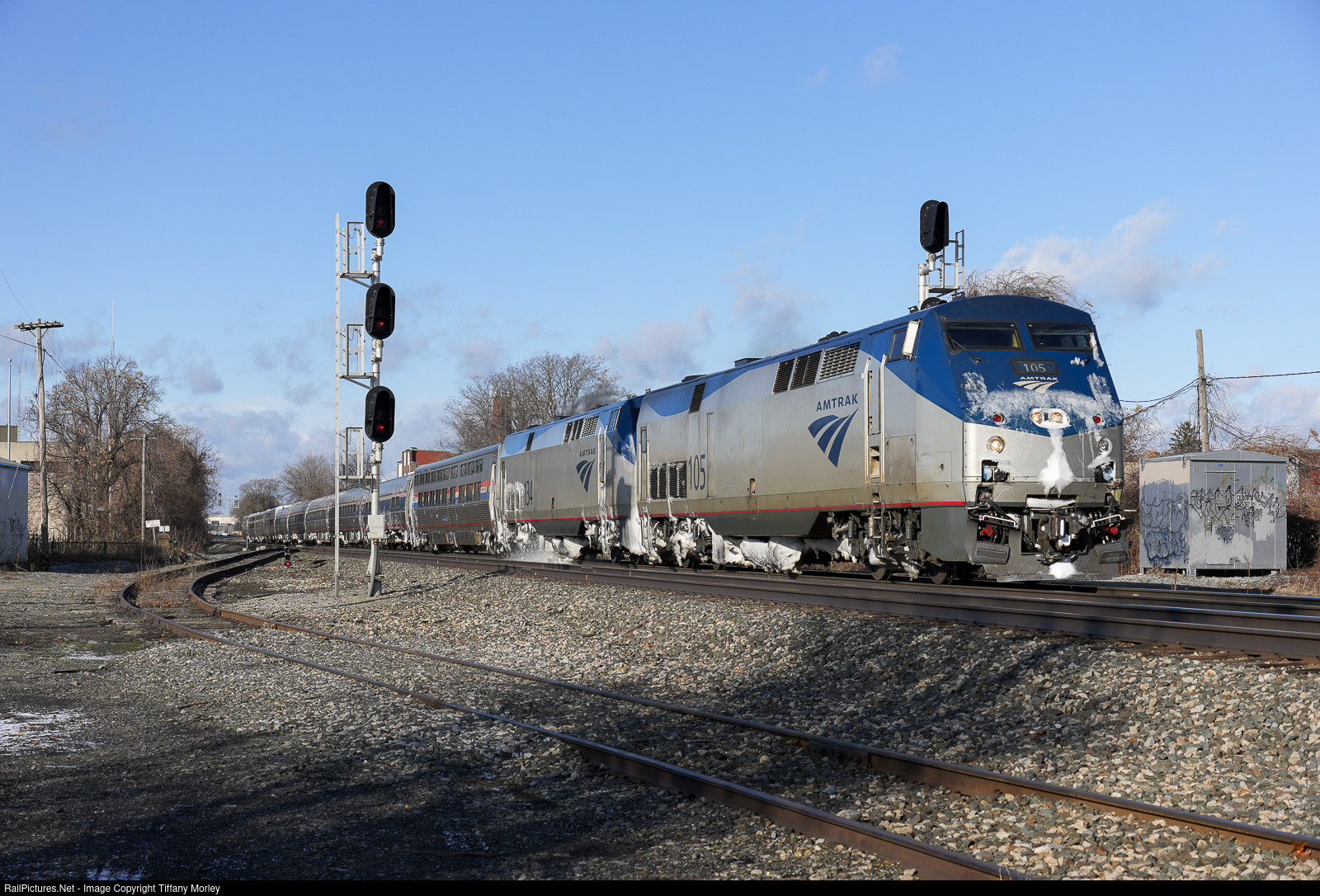 RailPictures.Net Photo: AMTK 105 Amtrak GE P42DC at Rochester, New York by Tiffany Morley