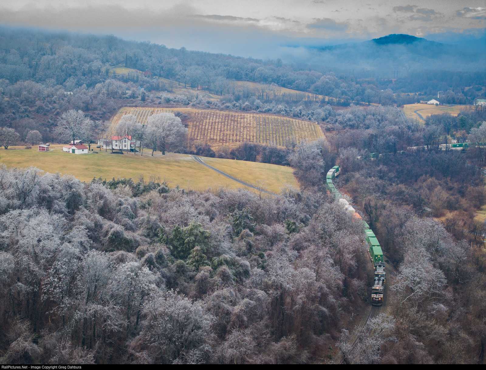 | 25A snakes through some beautiful Virginia countryside after an ice storm hit the highest elevations of the B-Line. The lower elevations were already starting to melt, creating some of the low clouds in the distance. |