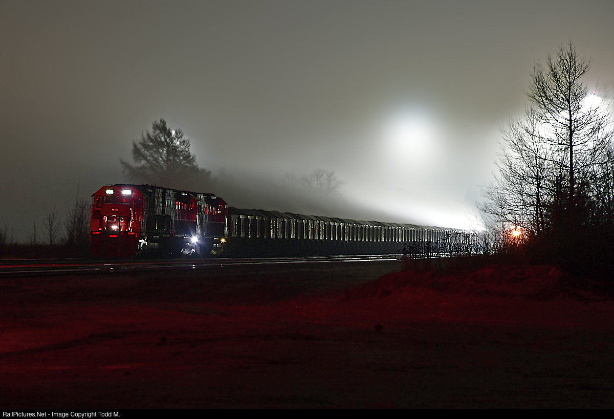 | All loaded out with fresh made iron ore pellets, DMIR 405, DMIR 400 and DMIR 408 are marked up as U717 and are looking for lights to depart United Taconite and head back to CN's Proctor yard. |