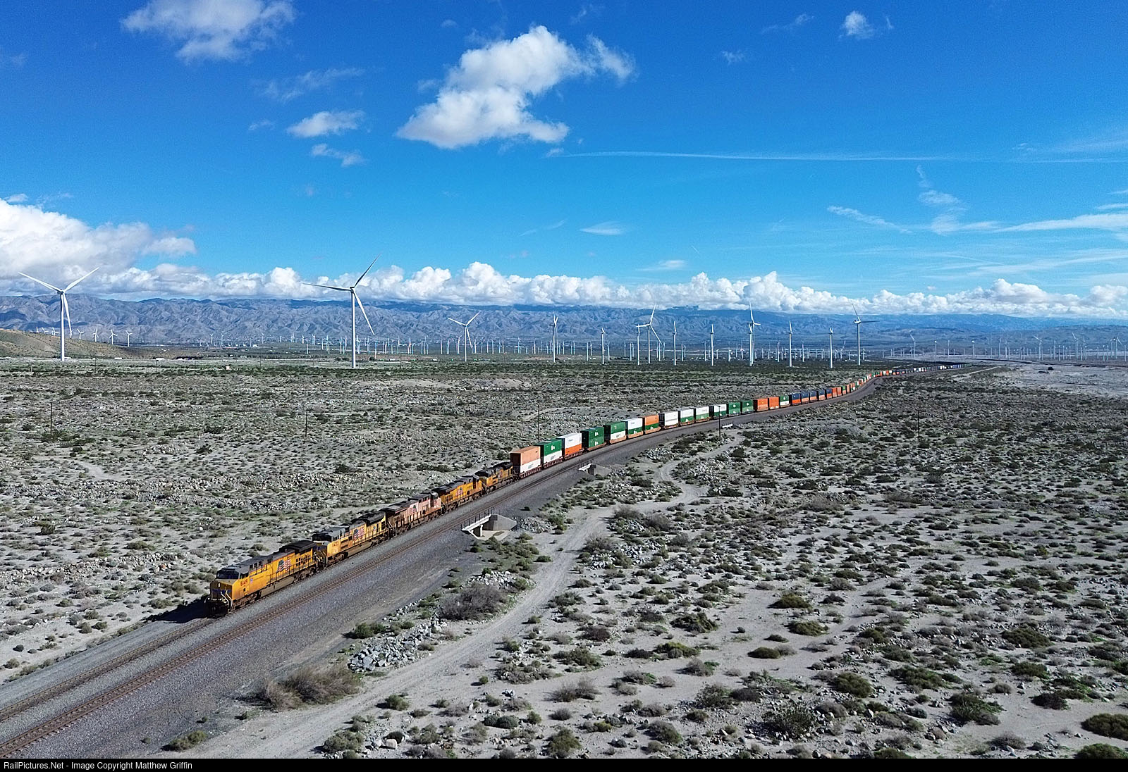 A long westbound Z works updrade between Garnet and West Palm Springs on UP's Yuma Sub.