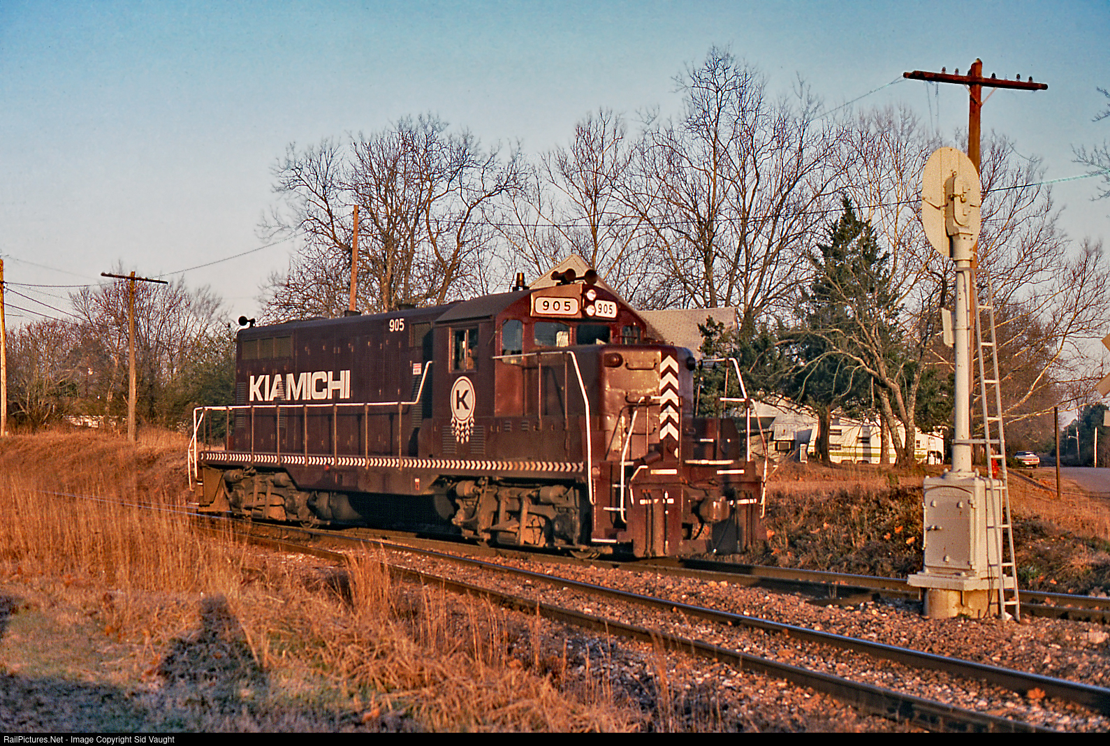 | In the low red sun of a late midwinter day in a most eventful year, this unit waits for a signal to cross the KCS main. Photo by Jim (that's him) Satterwhite. From my collection. |