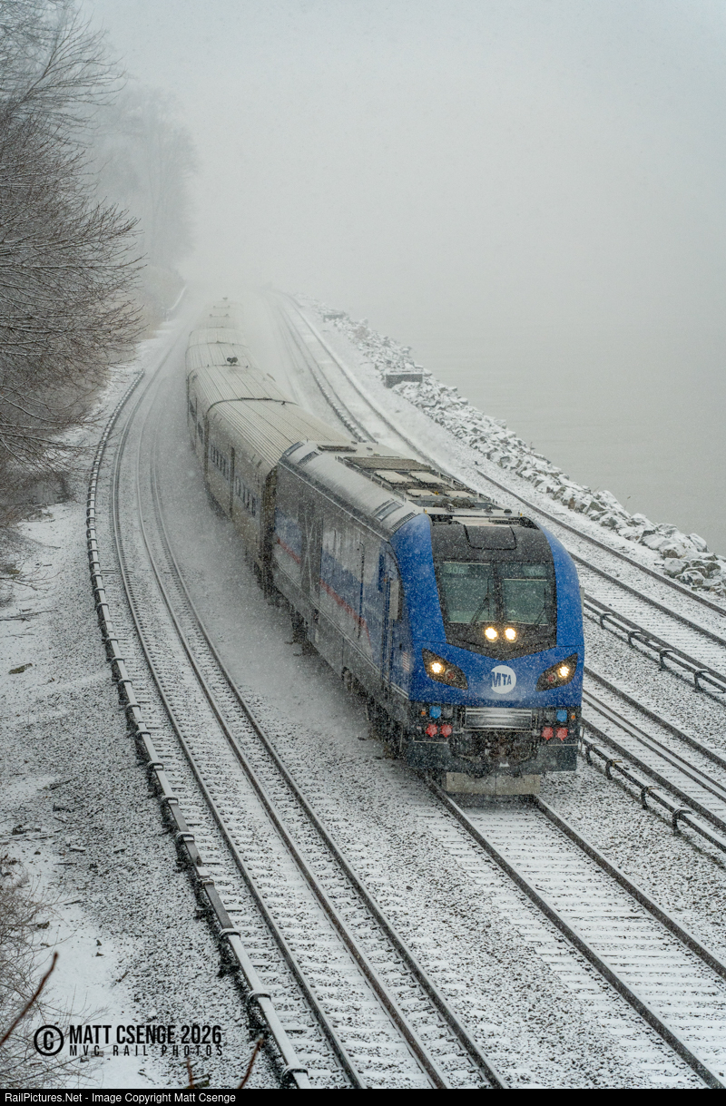 Metro-North Railroad (MNR) SC42-DM no. 306 is seen leading Hudson Line train 8819 north through Scarborough as heavy snow falls across the East Coast.