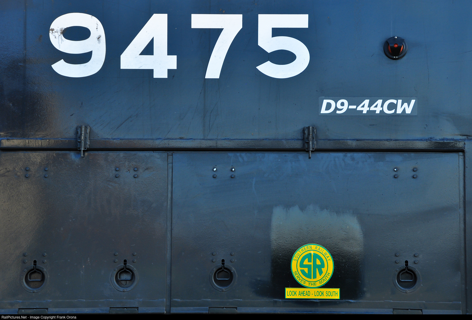 | Southern still Serves the South The 9475 shows off a recent Southern Railway decal placed underneath the road number on the engineer's side of the cab. Someone was mighty proud of this innovative Southeastern railroad and certainly wanted to keep their heritage alive. |