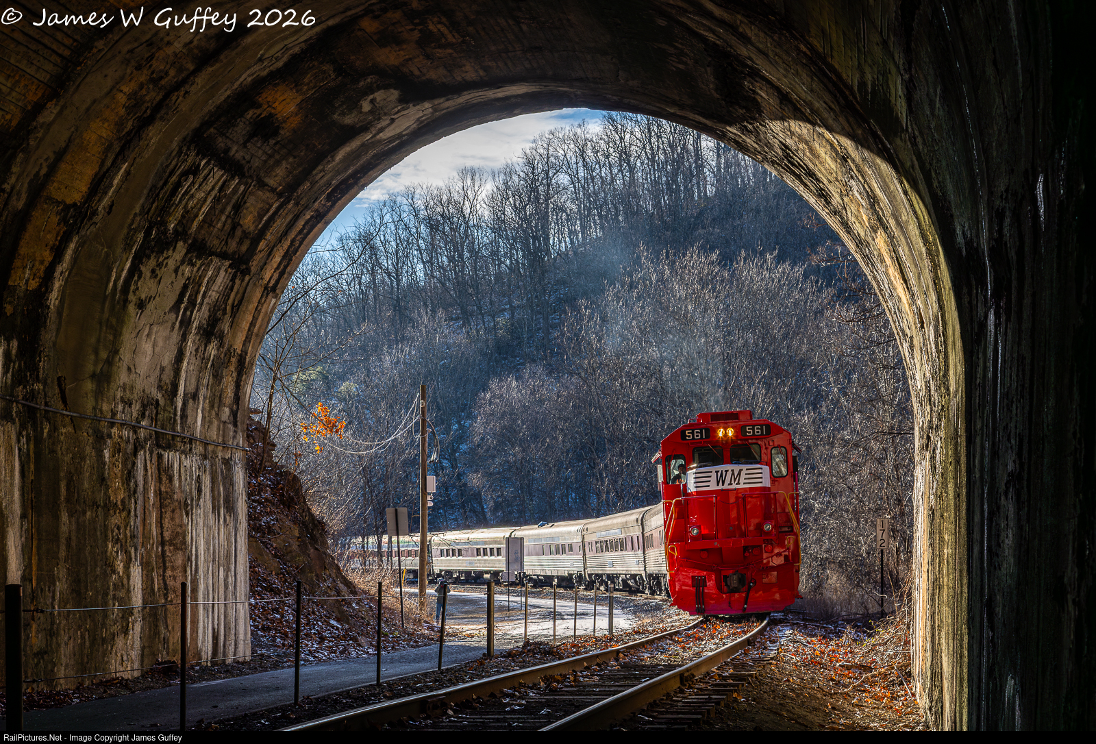 RailPictures.Net Photo: WMSR 561 Western Maryland Scenic Railroad GE B32-8 (Dash 8-32B) at Corriganville, Maryland by James Guffey