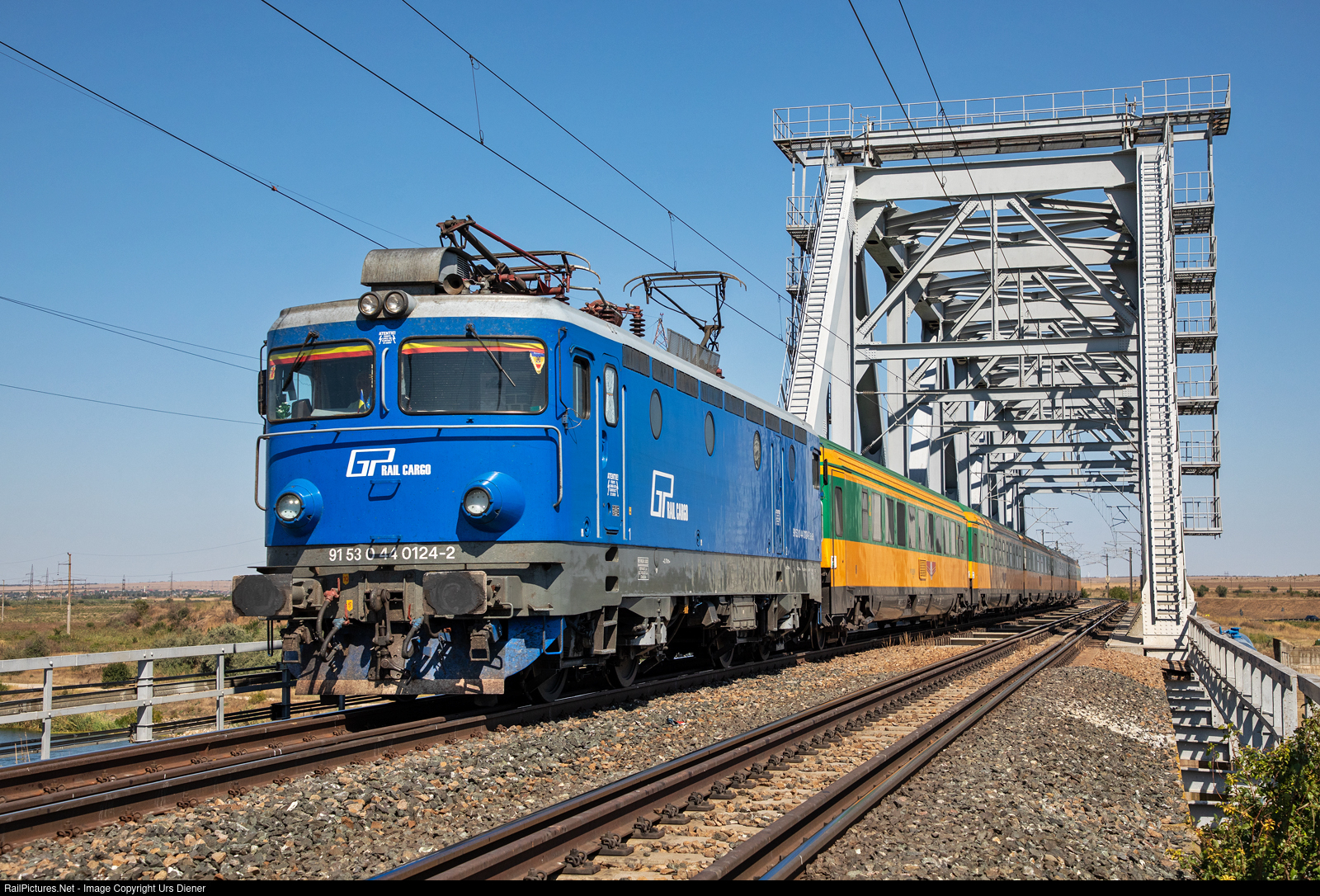 | GP Rail locomotive 44 0124 pulls the Astra Trans Carpatic night train IRN 11504 from Arad to Constanta, which is almost an hour late.