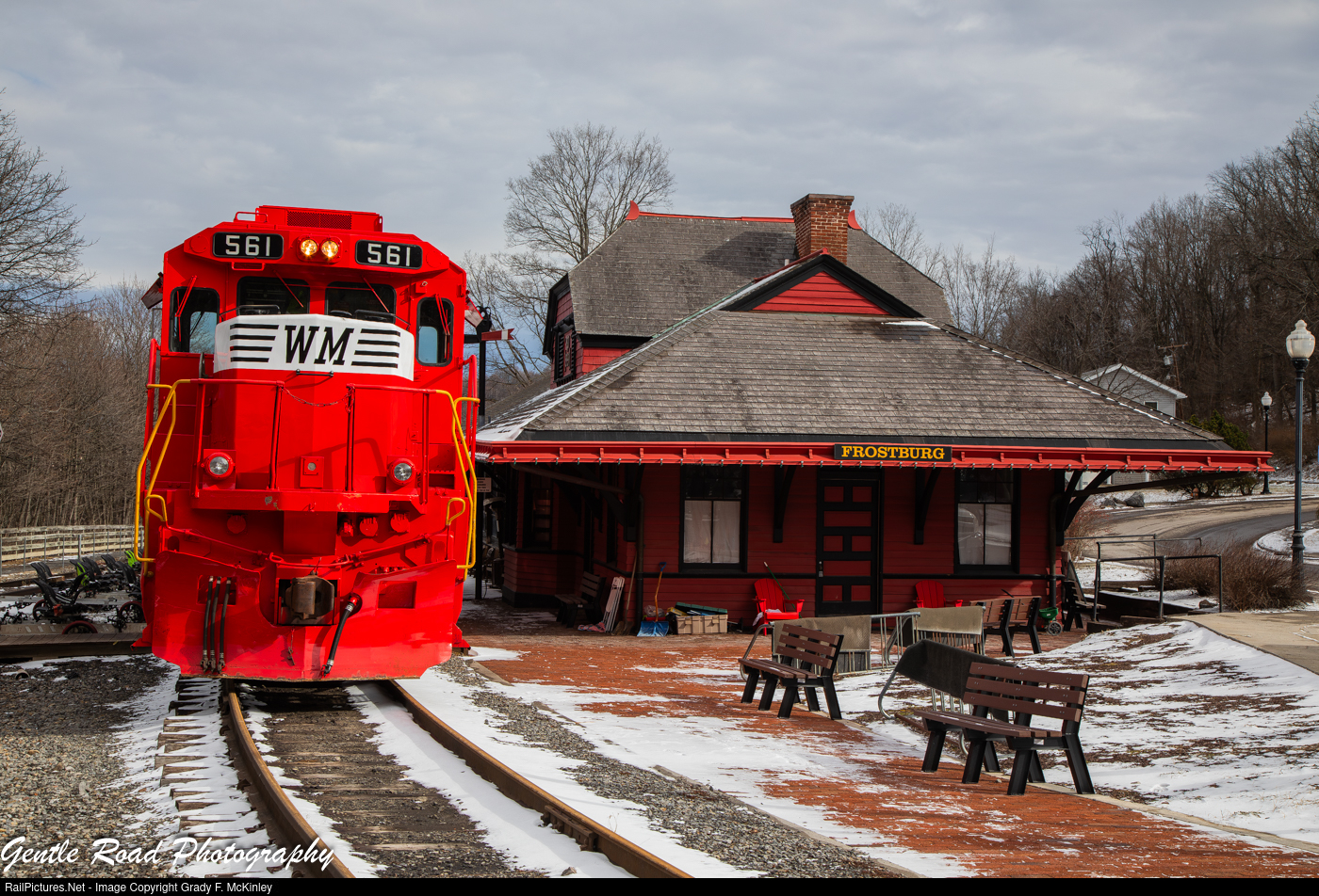 Western Maryland Scenic #561 rests at the depot in Frostburg during the photographers special.