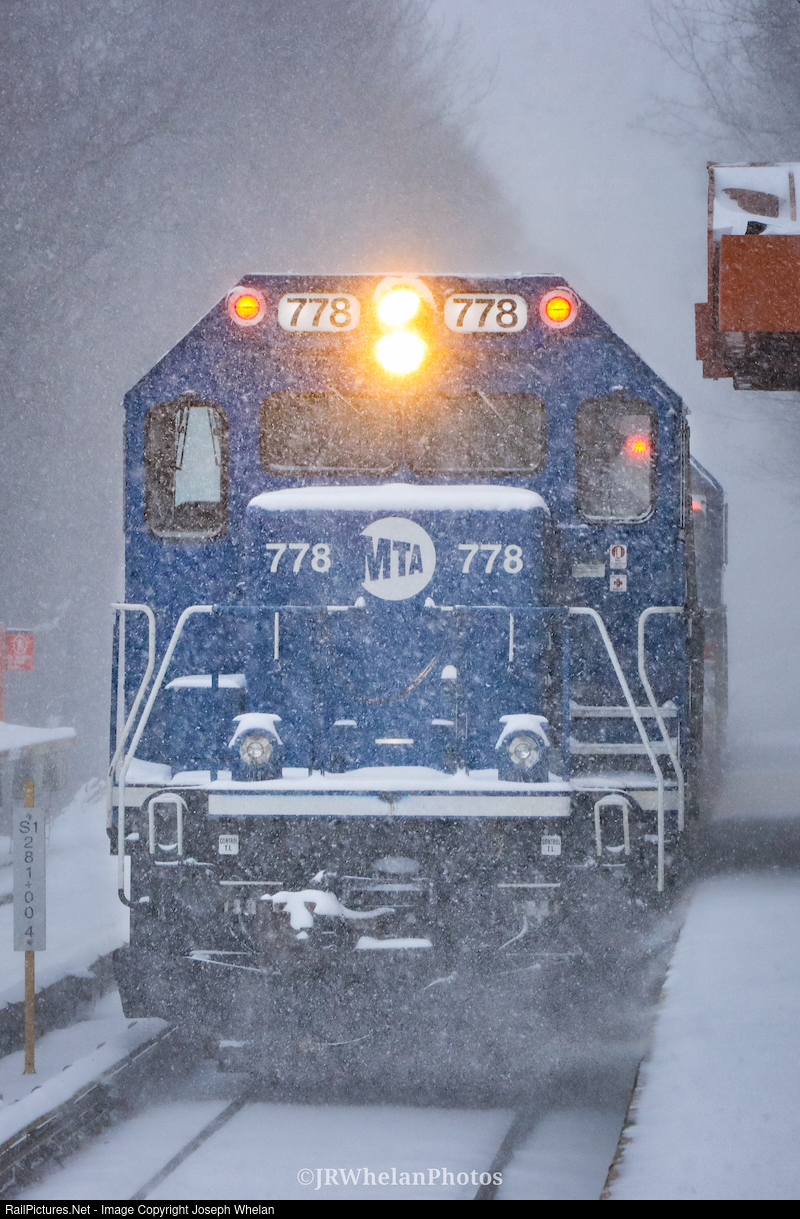 Staten Island Railway 778 trails the westbound De-Icer Train, clear to make the journey to Saint George.